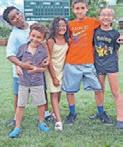 Different age groups are attending the camp on different days from 10 to 11 a.m. at Reverend Days Park, with younger kids running bases and learning how to throw and catch baseballs and older kids playing ball games.