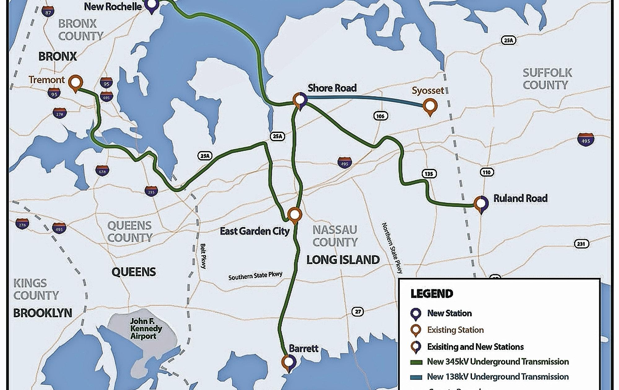 Three of the proposed lines will pass through Glen Head and Glenwood Landing. A roughly 9.1mile line will run from a Uniondale hub to Shore Road and a 17.7-mile line from Melville to Shore Road. Another 17.7-mile line will run from Shore Road to Westchester.