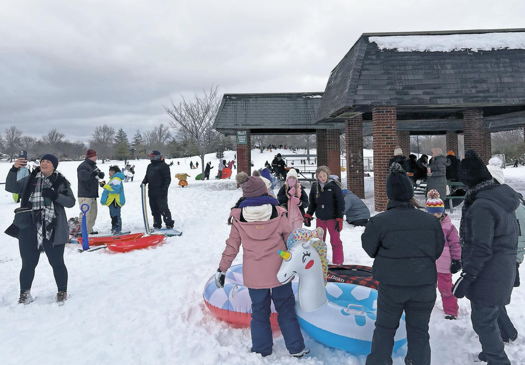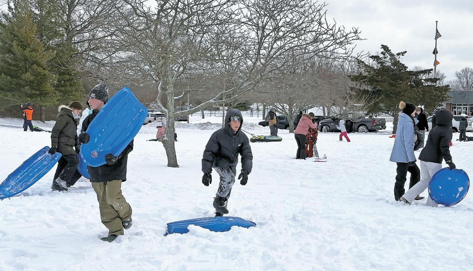 Families filled Cedar Creek Park in Seaford on Monday afternoon to enjoy sledding, snowboarding and winter fun after a foot of snow blanketed the area. Story, more photos, Page 4.
