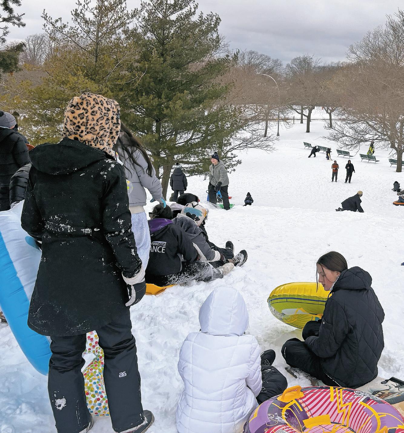 Cedar Creek Park in Seaford was bustling Monday as families from Wantagh, Seaford and Levittown came out to enjoy the first snow day of the season. Children and adults alike made the most of the wintry weather with sledding, snowboarding and friendly snowball fights throughout the day. The
