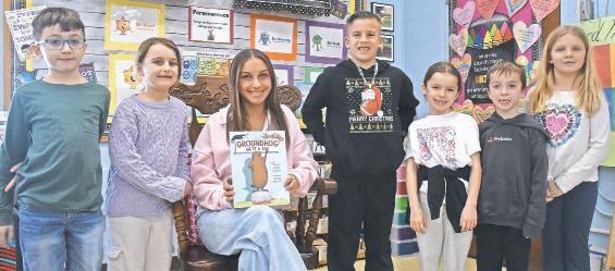 Senior Faith Stallone partnered with Barbara Moeller, her third-grade teacher at Forest Lake, who now teaches second grade. Stallone led a Groundhog Day lesson and found the experience helpful as she considers a future in education.