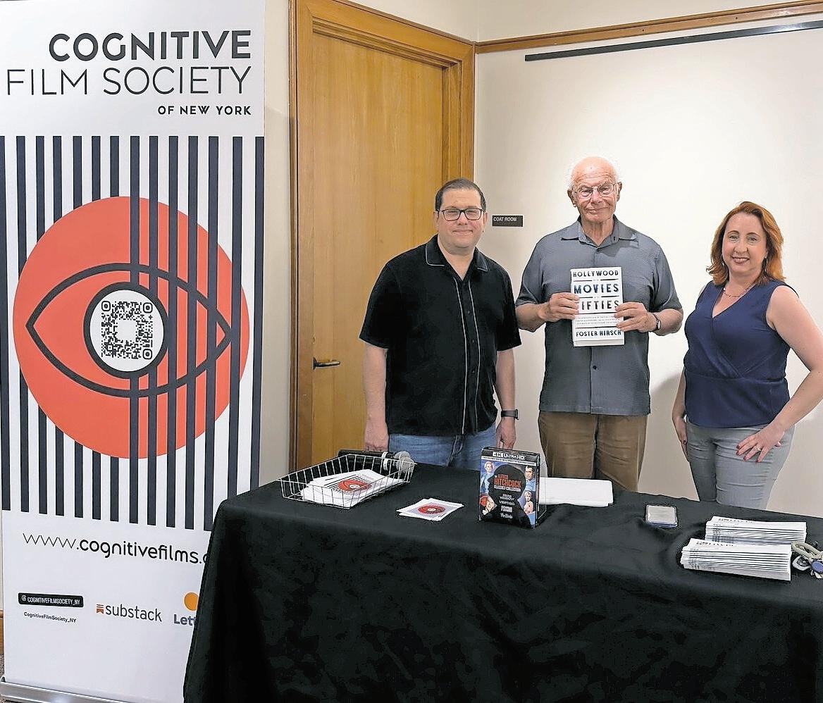 Libraries helped save patrons over $27 million in core services last year, through both familiar and new programs, like the Cognitive Film Society. Douglas Hesney, left, Foster Hirsch, and Director Michelle Young celebrated the first showing in June 2025.