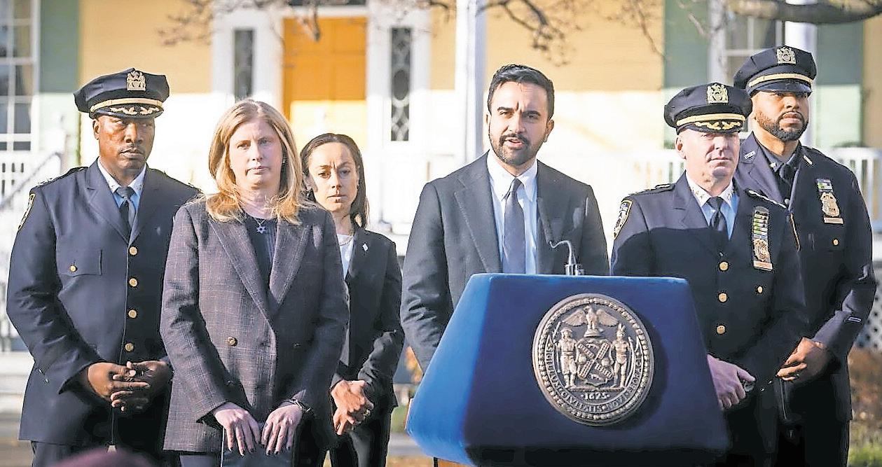 Mayor Zohran Mamdani holds a press conference at Gracie Mansion with New York City Police Commissioner Jessica Tisch, on Monday. Tisch is wearing a Jewish star. Ed Reed, Mayoral Photography Office