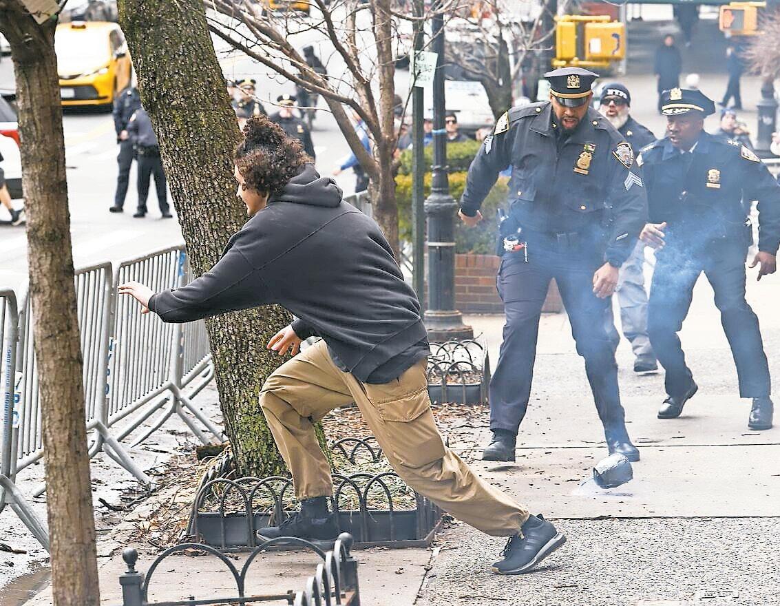 the area where the anti-Muslim protesters gathered” at around 12:15 pm, per the Justice Department complaint. He then ran down the block, and Kayumi gave him a second explosive device, which he appeared to ignite and drop “near where several NYPD officers were standing,” the complaint alleges.