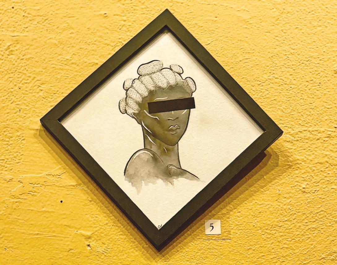 Devon Valentin-Dixon’s debut solo exhibit is displayed throughout An Beal Bocht Café, including both sketches and finished products.