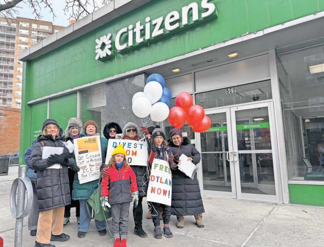 Dedicated activists rallied outside a Citizens Bank branch on West 235th Street, urging the financial institution to divest from for-profit prison operators that run dozens of U.S. Immigration and Customs Enforcement, or ICE, detention centers.