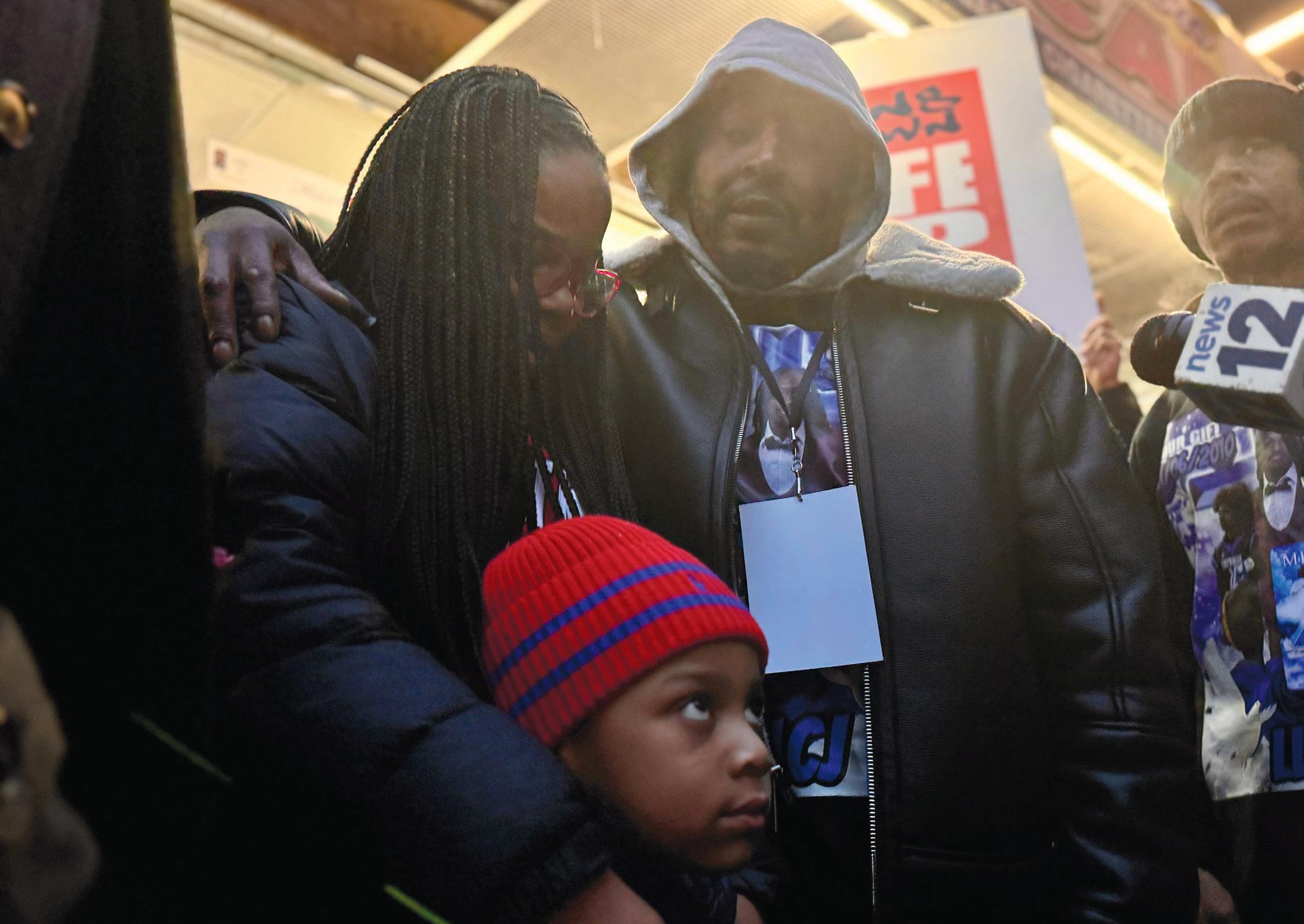 Christopher Redding’s parents embrace his younger brother as they call for justice for their