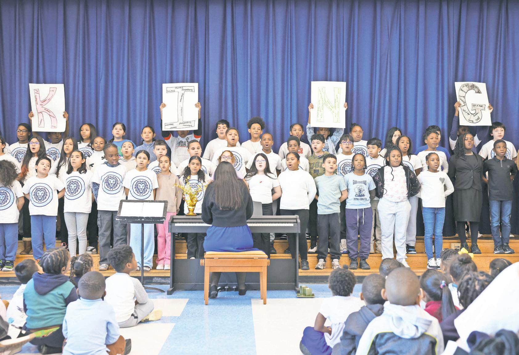 Billy Harrison/Herald photos Fifth-grade students at Grand Avenue Elementary School performed in honor of Martin Luther King Jr. Day, and learned about other heroes of the civil rights era.