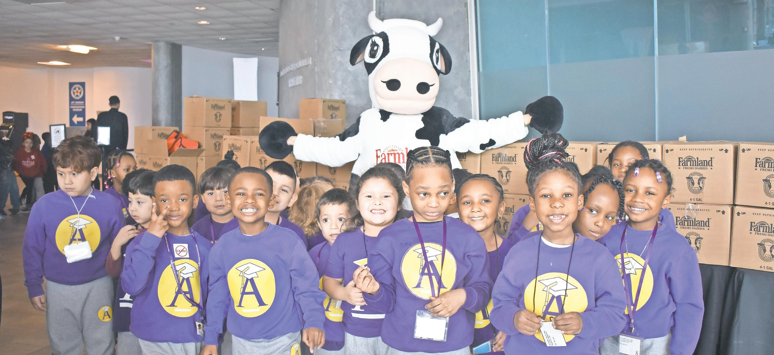 Throughout the atrium, lively mascots of Bluey from the television series, a Farmland cow and even tooth fairies filled the room to make kids feel comfortable as they walked in. Each student also got to take home milk and an apple for healthy eating.