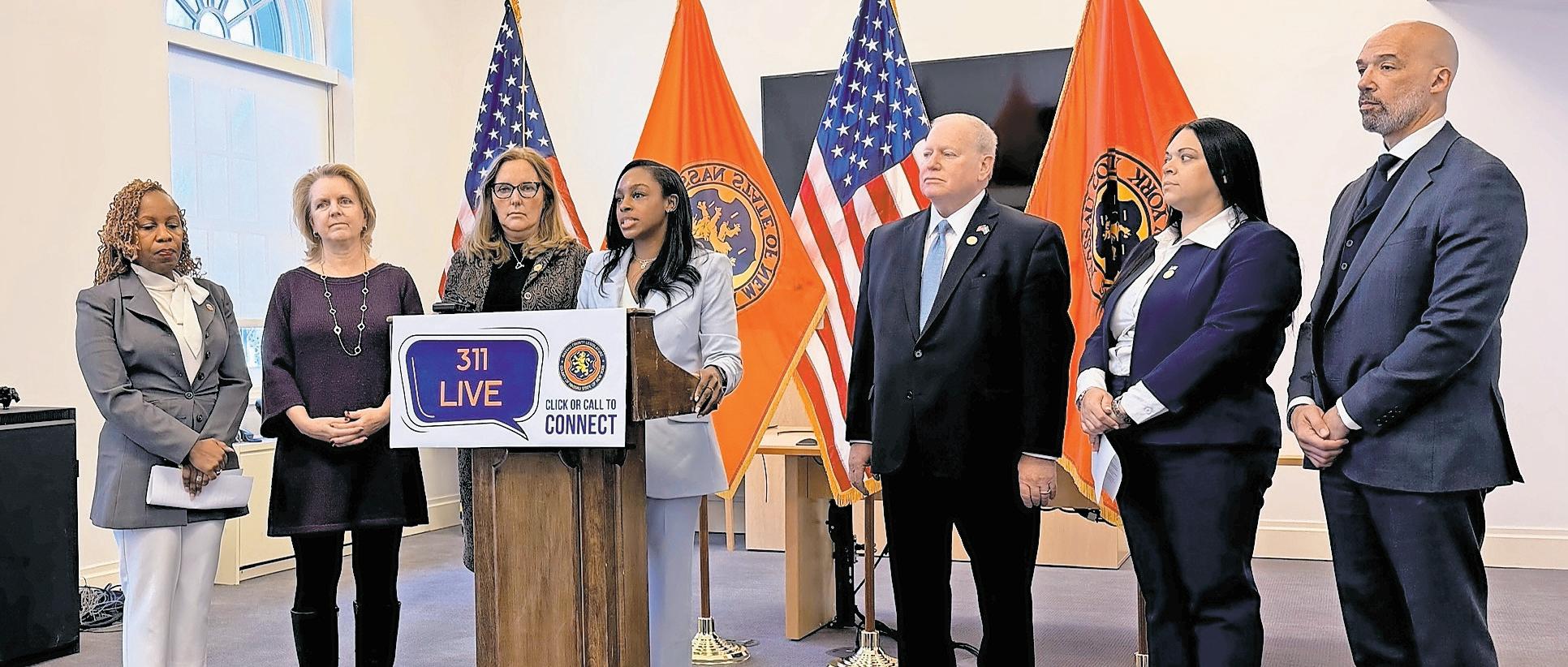 Nassau County Legislator Olena Nicks introduced her proposal for a countywide 311 system on Feb. 9, saying the service would help reduce 911 call volume and improve emergency response times.
