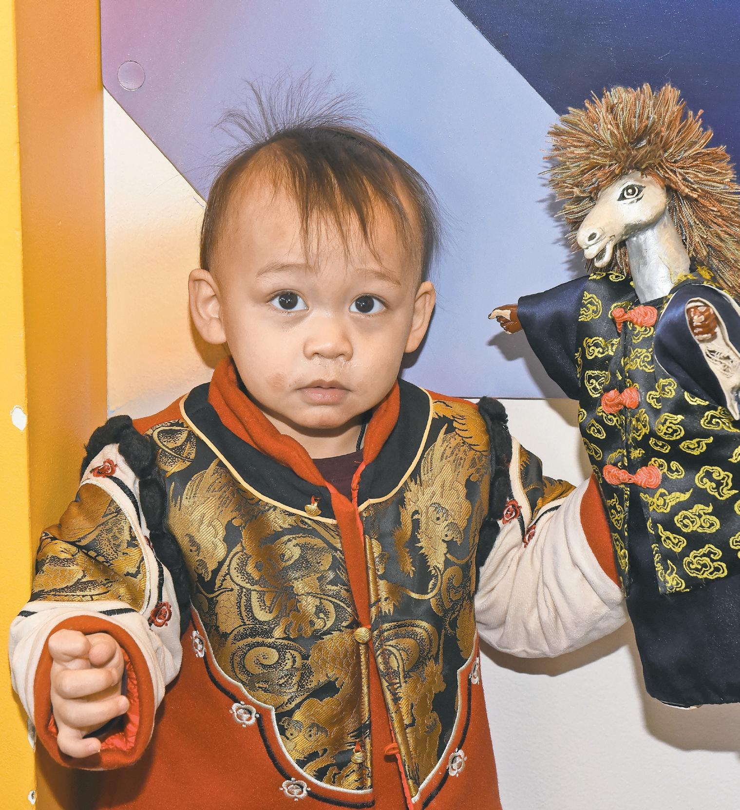 The Long Island Children’s Museum celebrated Lunar New Year with Chinese Theater Works’ puppet show, “Hao Bang Ah! Horse” — a Chinese expression meaning “Great!” or “Well done!” The original “budaixi,” or glove puppet performance, highlighted the Year of the Horse with skits, dances and songs celebrating the wisdom of the 12 zodiac animals. Each year, Theater Works presents a Chinese New Year performance. Above, the puppeteers, clockwise from top left, Stephen Kaplin, Arielle St. Louis, Huixin Bai, Jing Shan, Kyang-Yu Fang and Harrison Greene created a bilingual experience that even the youngest audience members could understand. At right, Aurora Lin, 7, celebrated in traditional attire. Story, more photos, Page 10.
