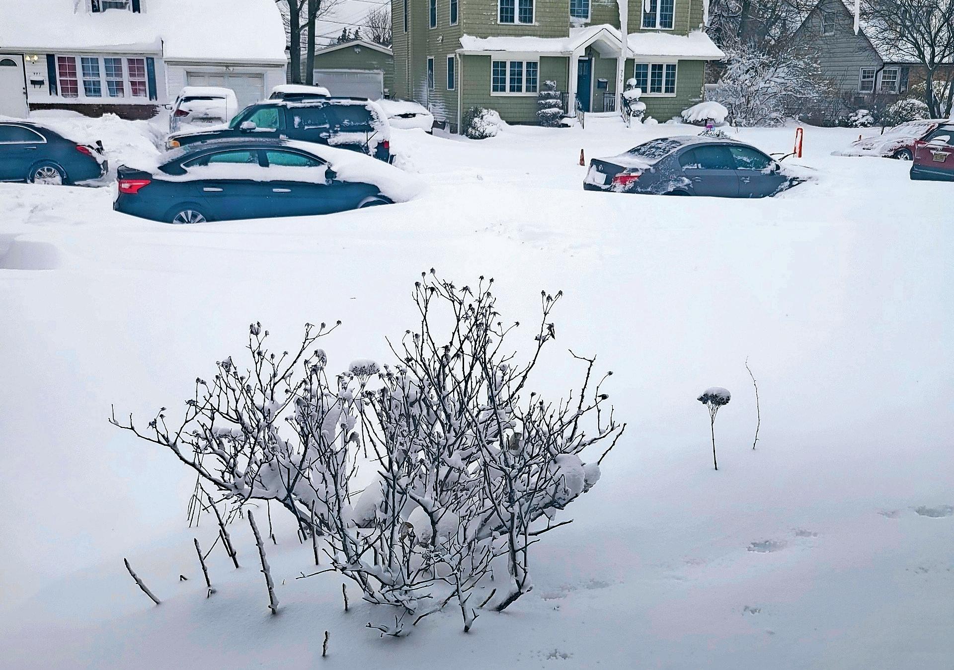 Aftermath of the blizzard on Monday. Ebony Guerrier hardly manages to open her door or leave her house due to the massive amount of snow.