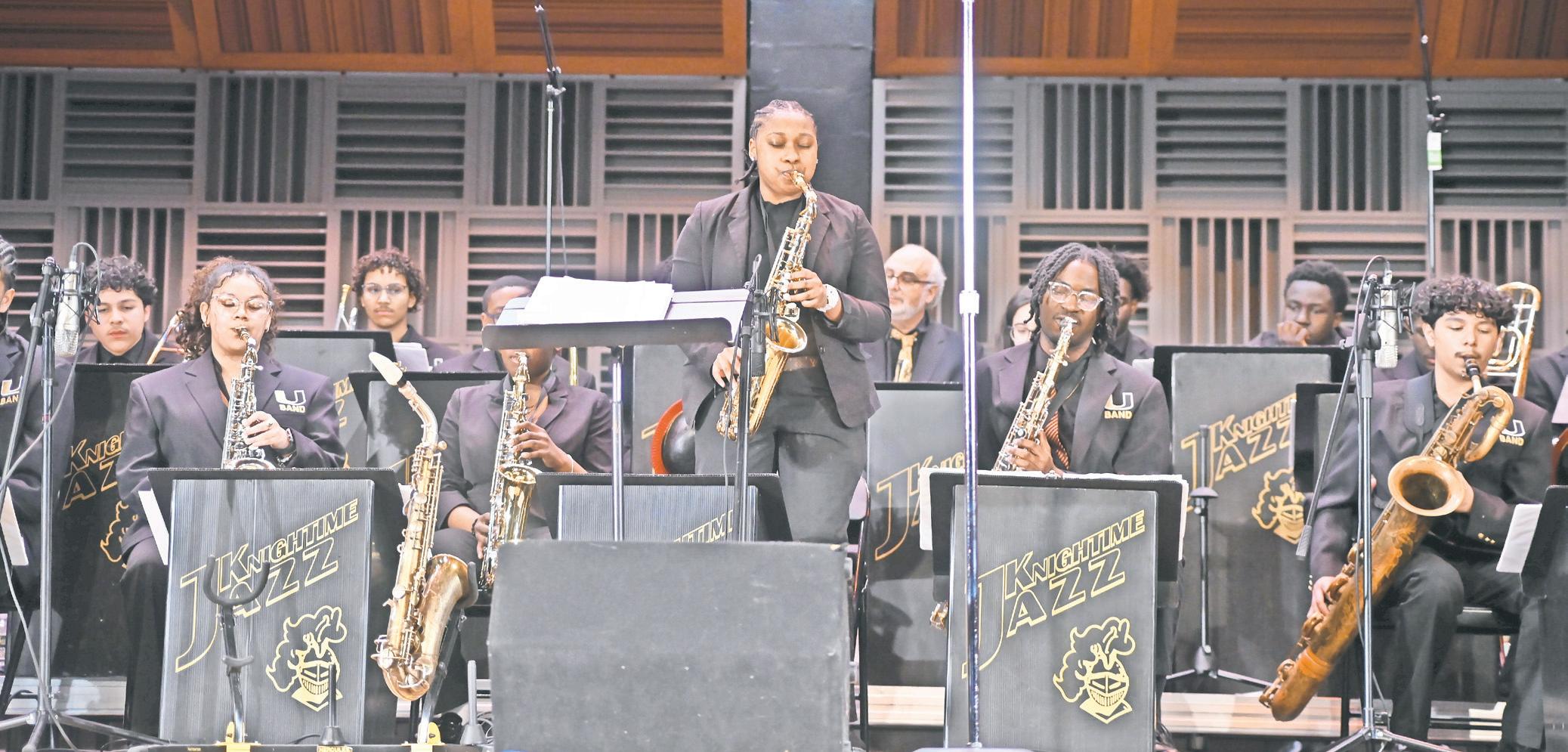 Colton Wynter, Uniondale’s music director who has led the program for about 20 years, said Jazz Night was created specifically to spotlight the dedication of the students. Joseph Boardman, also a Knightime Jazz Band director, has