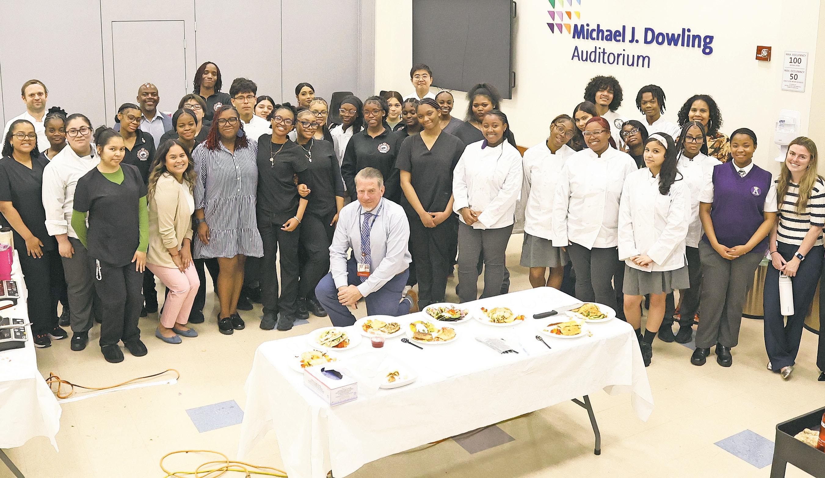 Forty students from Uniondale’s Academy Charter School returned to Long Island Jewish Valley Stream for another installment of the MedVoyage program, taking part in a hands-on cooking competition inside the hospital’s Food and Nutrition Services department.