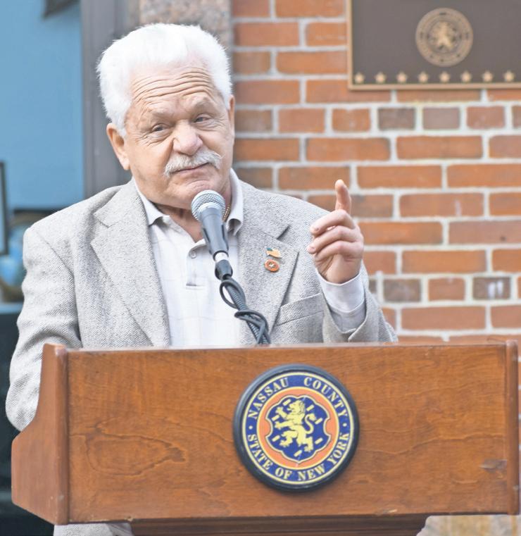 Ralph Esposito, director of the Nassau County Veterans Service Agency, spoke about ongoing initiatives to support local veterans, including food drives and plans for a new housing project in Island Park.