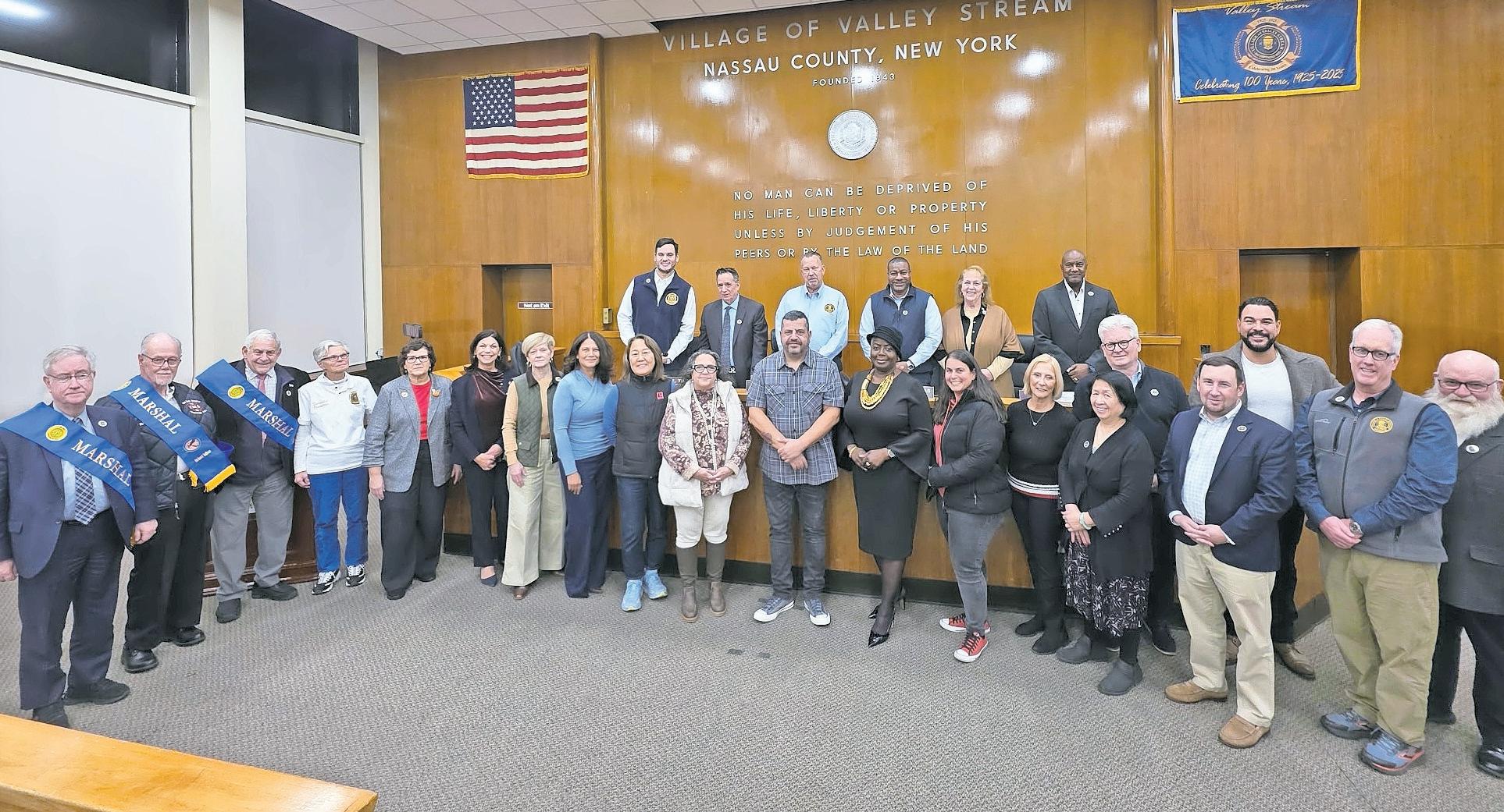 Before beginning regular business, Mayor Ed Fare and the trustees highlighted contributions from a local business owner and from organizations that played key roles throughout Valley Stream’s year-long cenCoNtiNuEd oN pagE 6