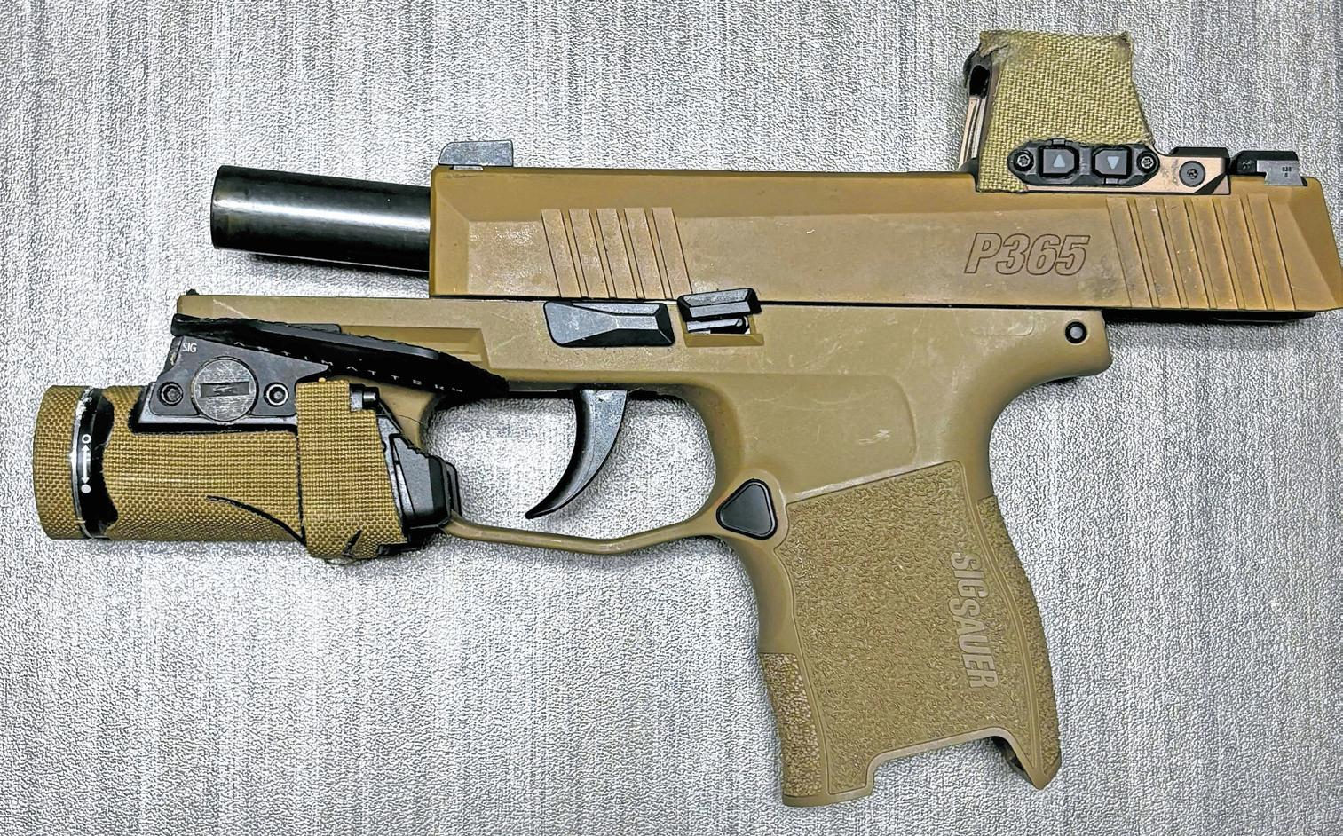 The tan handgun allegedly brandished by Jesse DeMarco at a landscaper during the disturbance on Rose Avenue in Valley Stream.