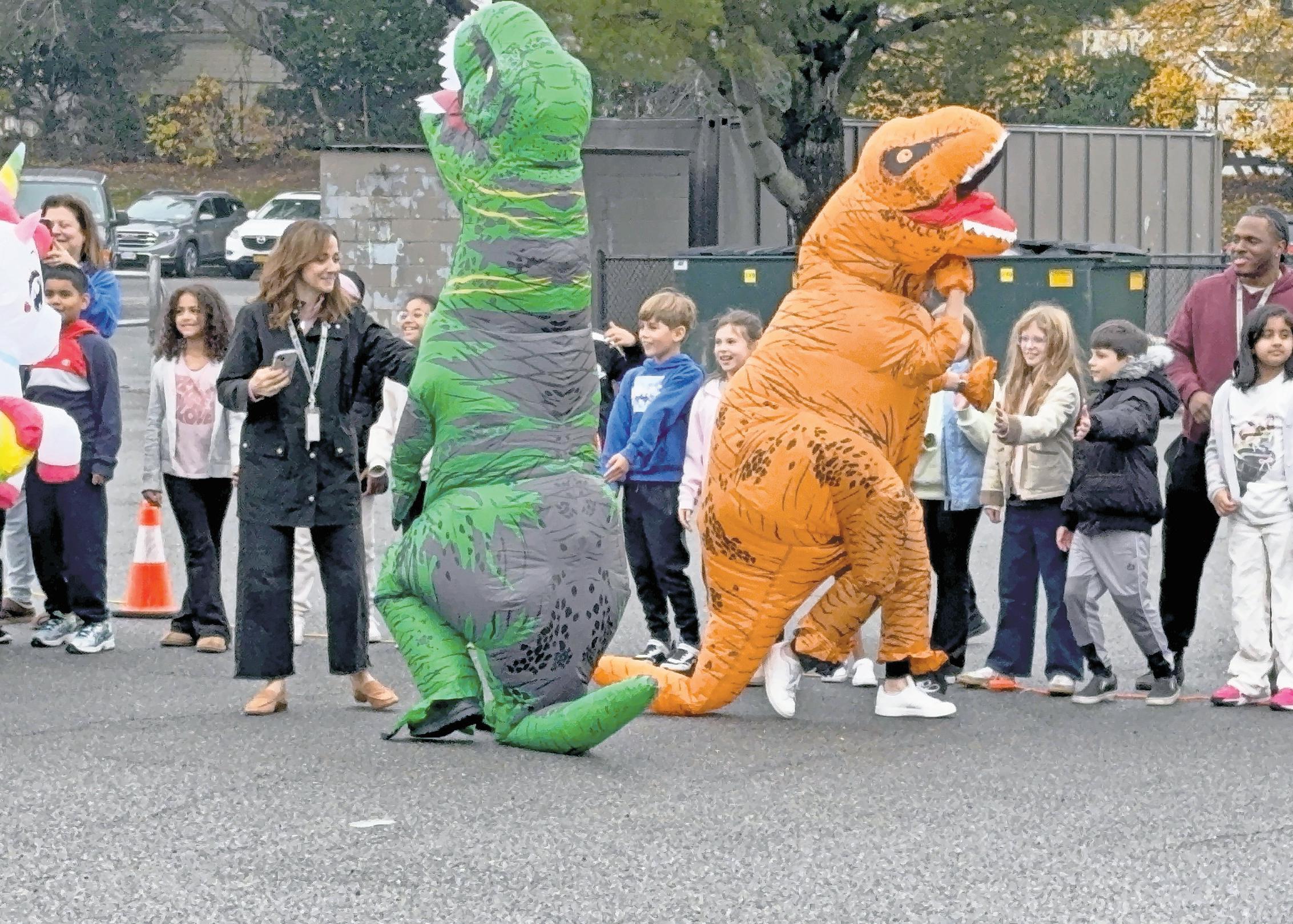Two inflatable dinosaurs battled it out, adding a roar of fun to the festivities.