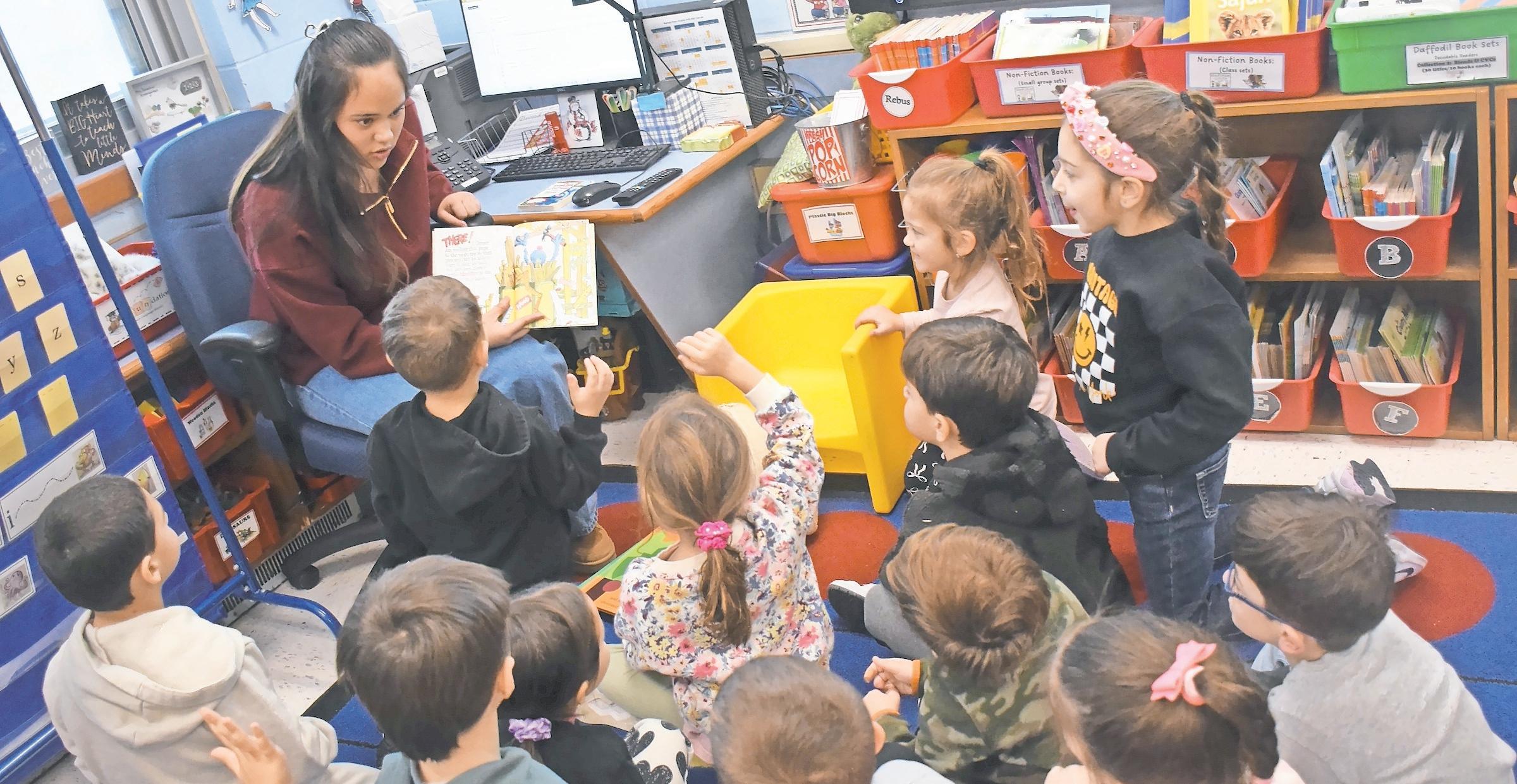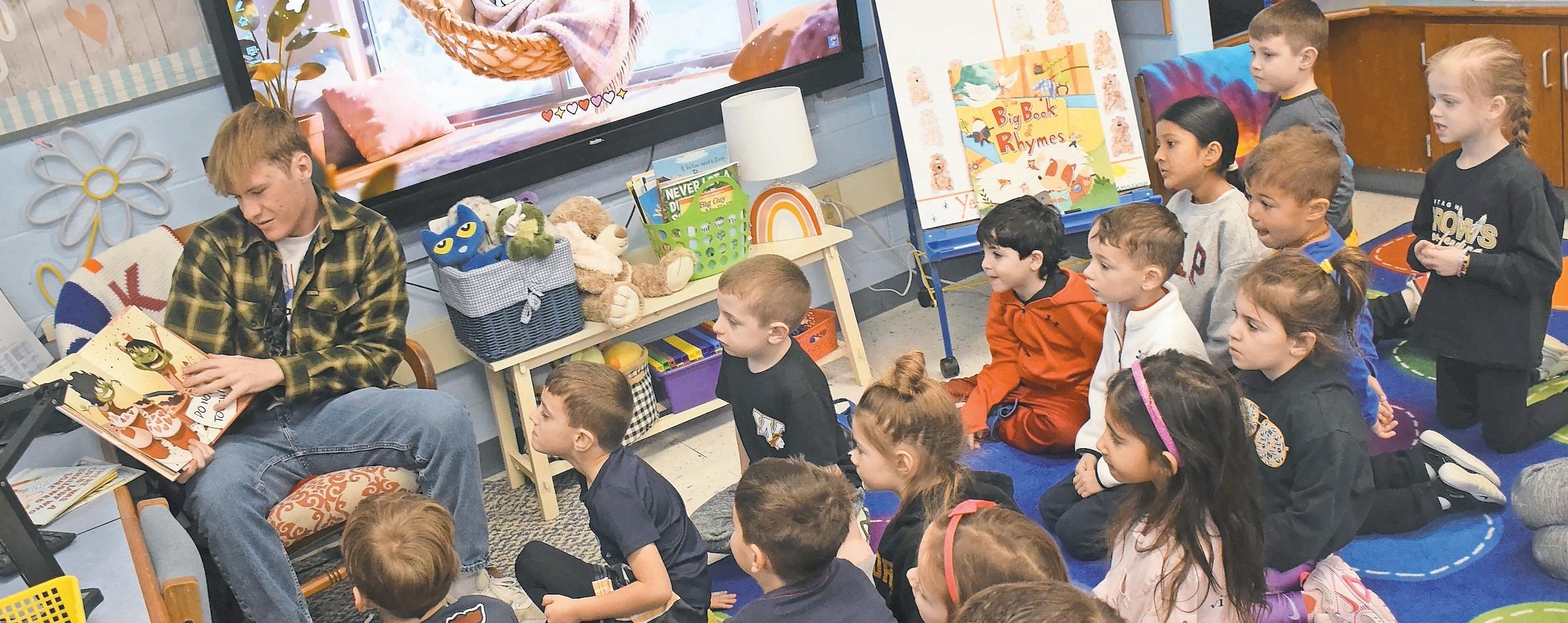 Senior Faith Stallone read a Groundhog Day book to students during her first Shadow Day experience at Forest Lake Elementary School.