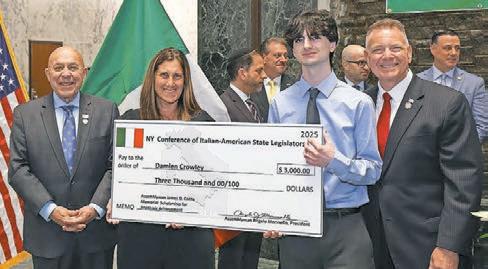 Wantagh’s Damien Crowley was awarded a $3,000 statewide academic scholarship from the New York Conference of Italian American State Legislators by State Senator Steve Rhoads, recognizing his perfect ACT score, advanced research in sustainability, and outstanding community service.