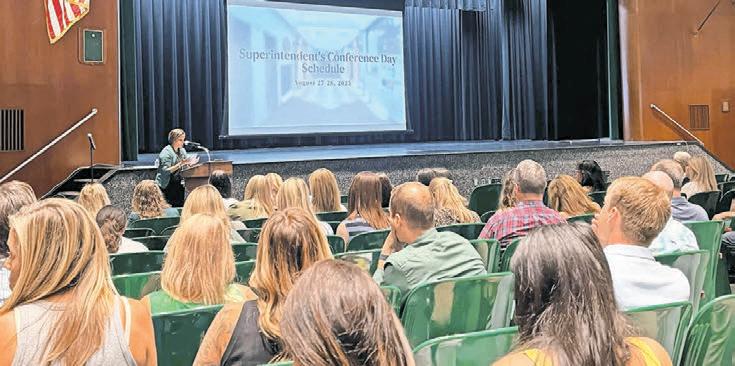 The district also welcomed 22 new teachers at the conference. The group had already gathered in the high school library on Aug. 20 for a two-day orientation program, in which they toured the four schools, visited community landmarks and attended an informational session on the CoNTiNued oN PaGe 10