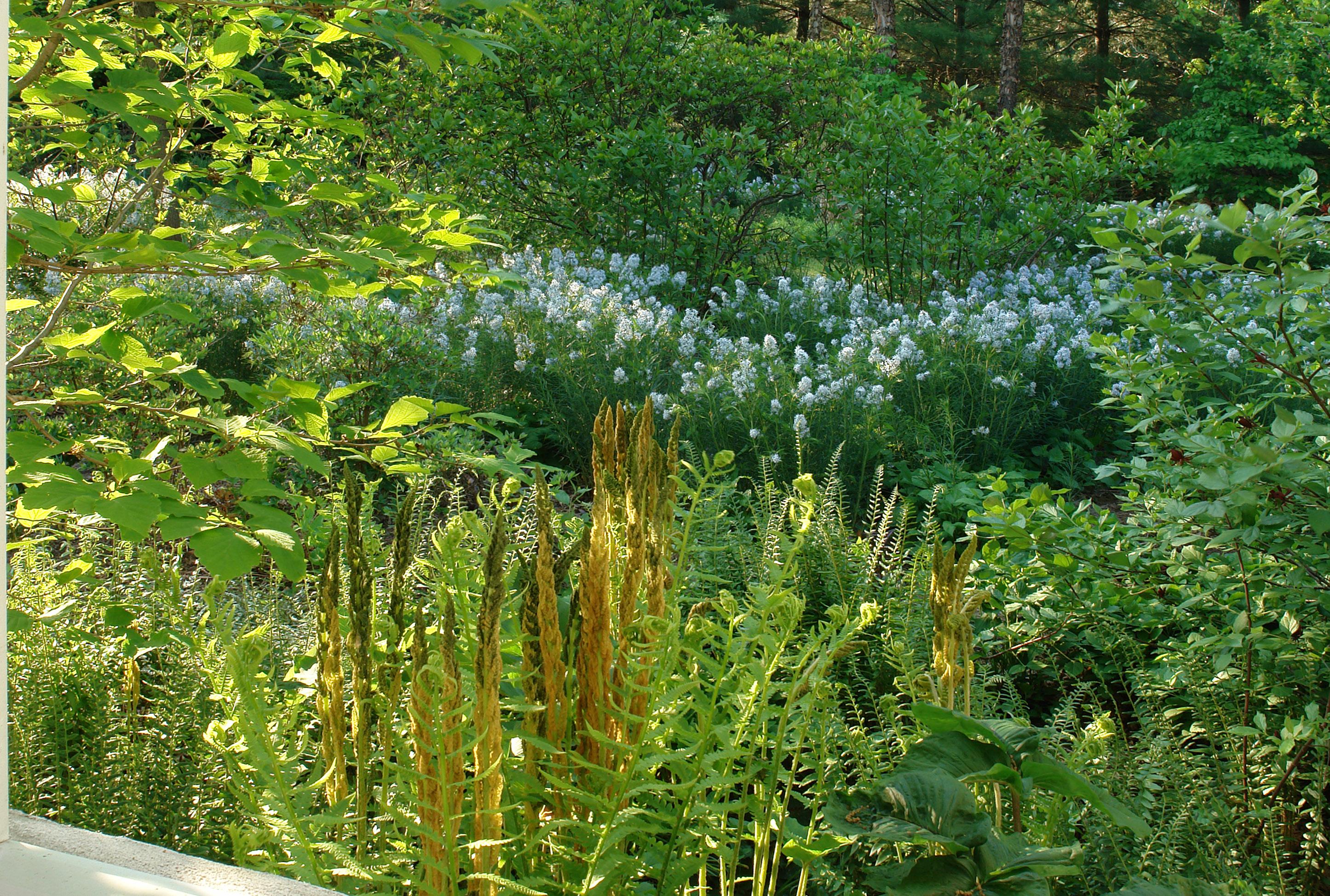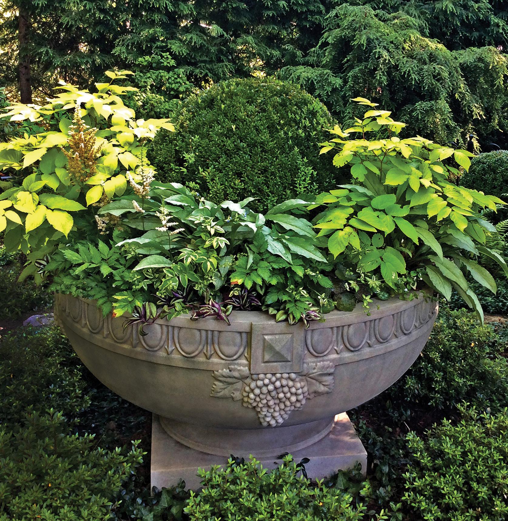 Hay que pensar fuera del phlox. “Aproximadamente un 80% de mis proyectos son bajo sombra y eso es un desafío porque la mayoría de las personas desean jardines con colores súper llamativos. En la sombra, nada florece durante tanto tiempo, por lo que durante una temporada completa usted desea textura y follaje de colores vivos en lugar de flores”.