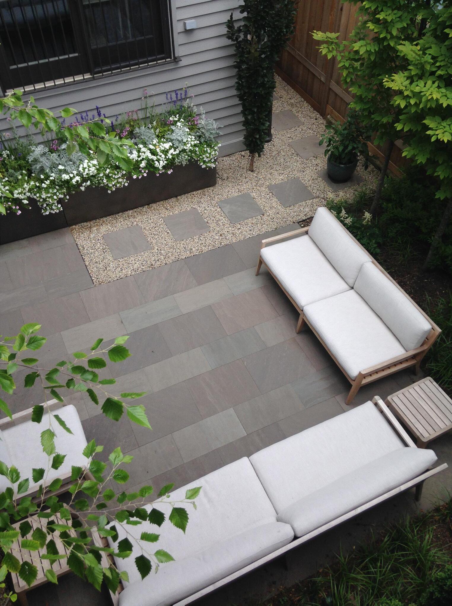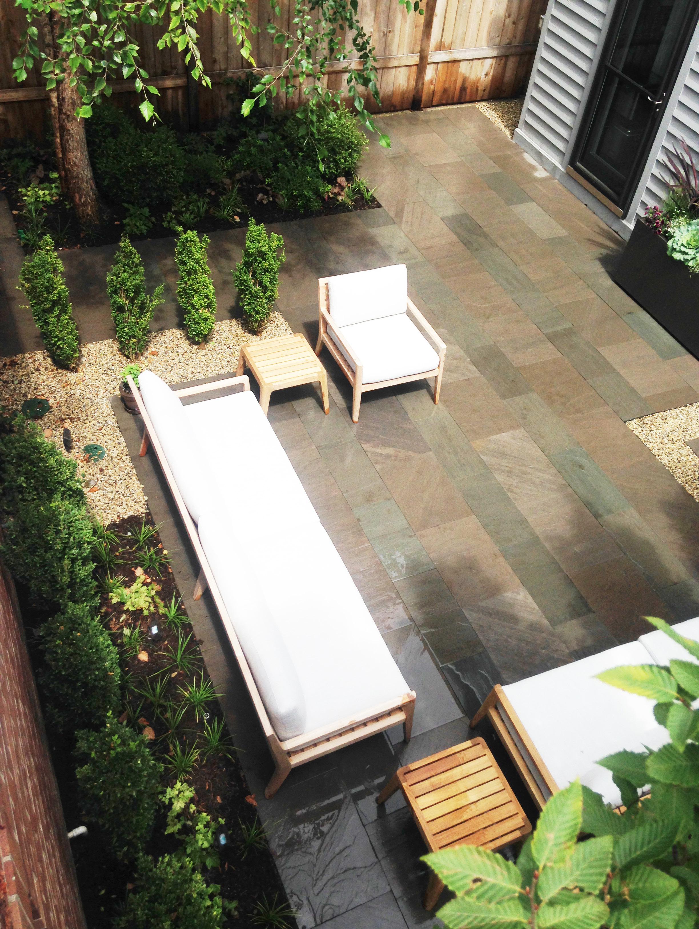 “Es un patio muy común en Chicago –25 pies de ancho por 20 pies de largo”, afirma Drew Kibbe, diseñador sénior de Christy Webber Landscapes. “Los clientes querían un oasis atractivo que fuese sencillo y limpio –que no requiriese de trabajo de jardinería–, querían elementos de concreto y privacidad. El abedul fue el único sobreviviente –era un hoyo de suciedad y hierba.”