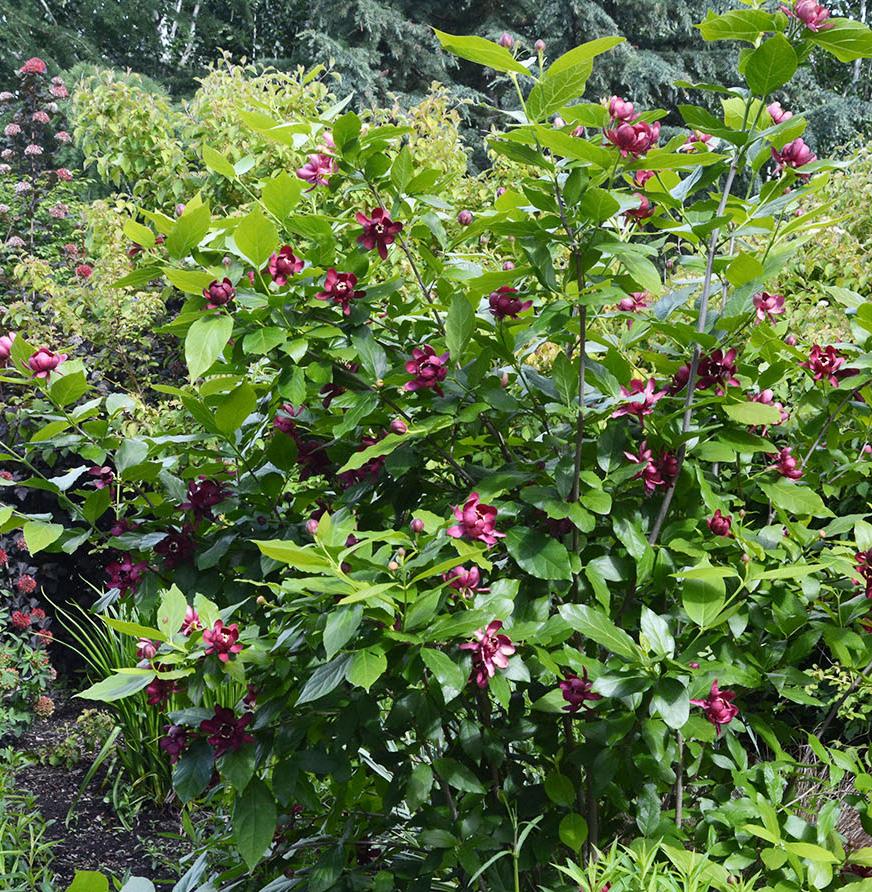 Minimal maintenance is the key to this plant’s success in the landscape. This, coupled with the extraordinary flower power of Calycanthus ‘Aphrodite’, is the reason this plant shines for me.
