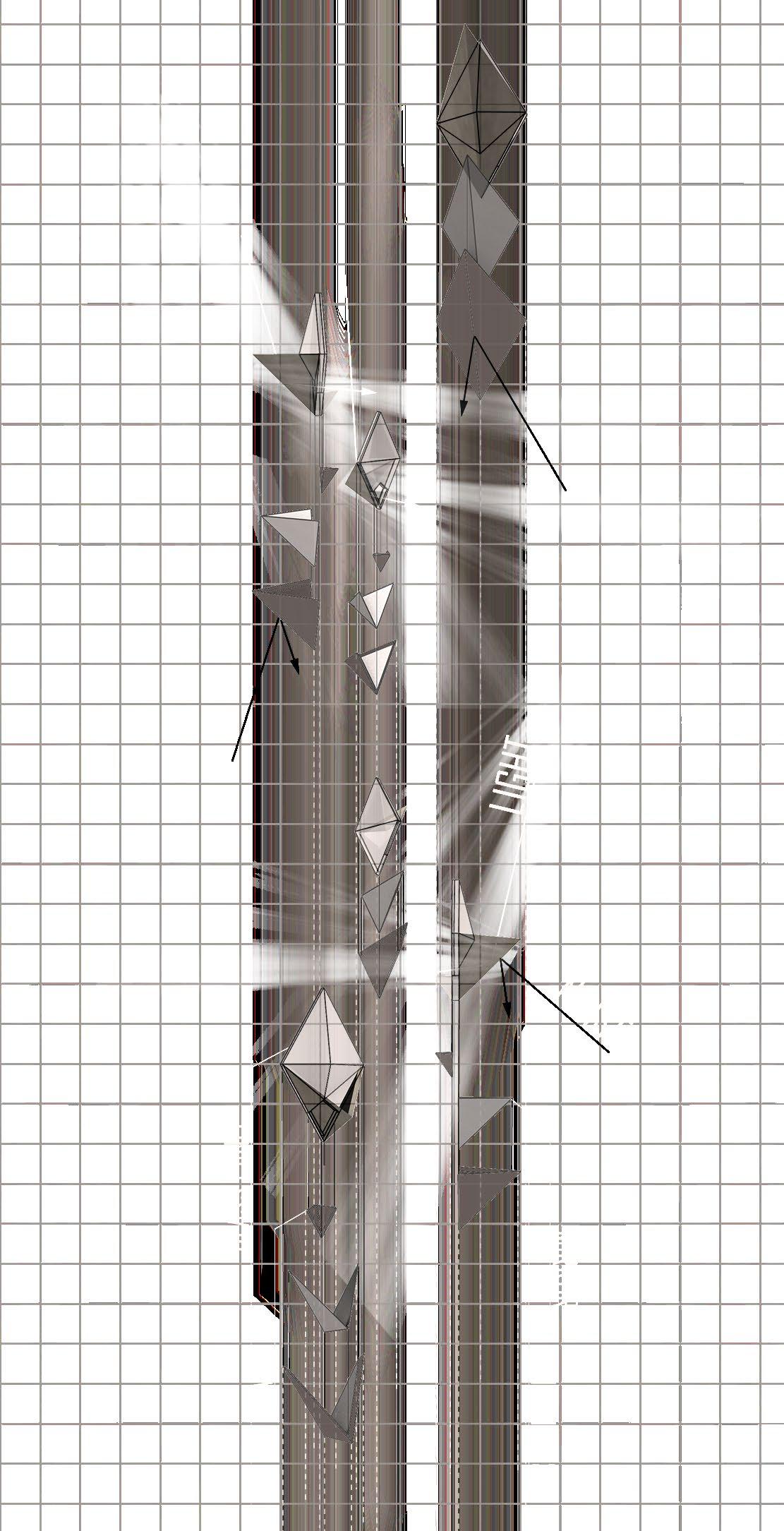 Imagine inhabiting a space of tranquility, immersed in soft warm light, within a site once dominated by relentless highway noise that penetrated the surrounding residential area. Wall of Tranquility transforms this condition into a sanctuary through a dual-layered shell that forms an inhabitable void where calibrated panels reflect, absorb, and dissipate sound, allowing silence to become the primary spatial material.