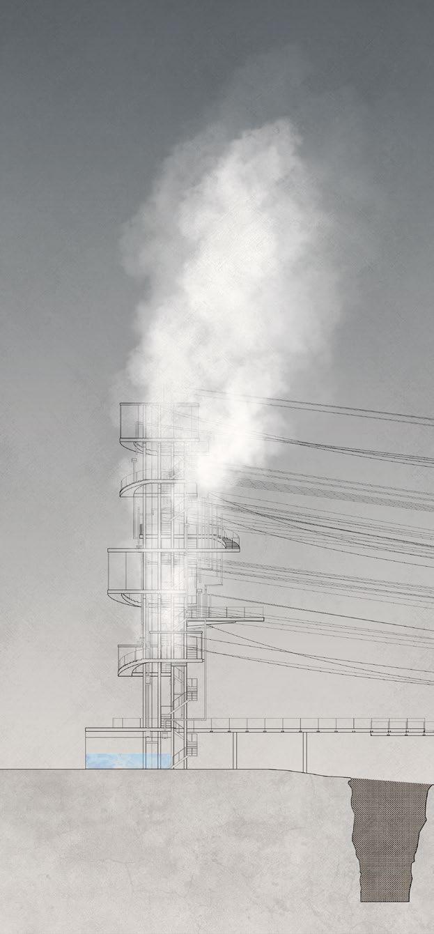 Due to the mother nature, There is close to infinite amount of steam produced underground of Iceland. Coexistance of two continental techtonic plates next to each other, this country is gifted with endless active volcanic activity. Century Tower, accomodates this nature attribute, steam, to visually present the evolution of time. Not only so, With the visual effect created by steam, the two towers can be seen from far away and produce self sustainable energy throughout the system. By that a Steam Skyscraper is built with less than 10 floors.