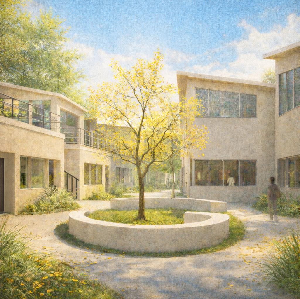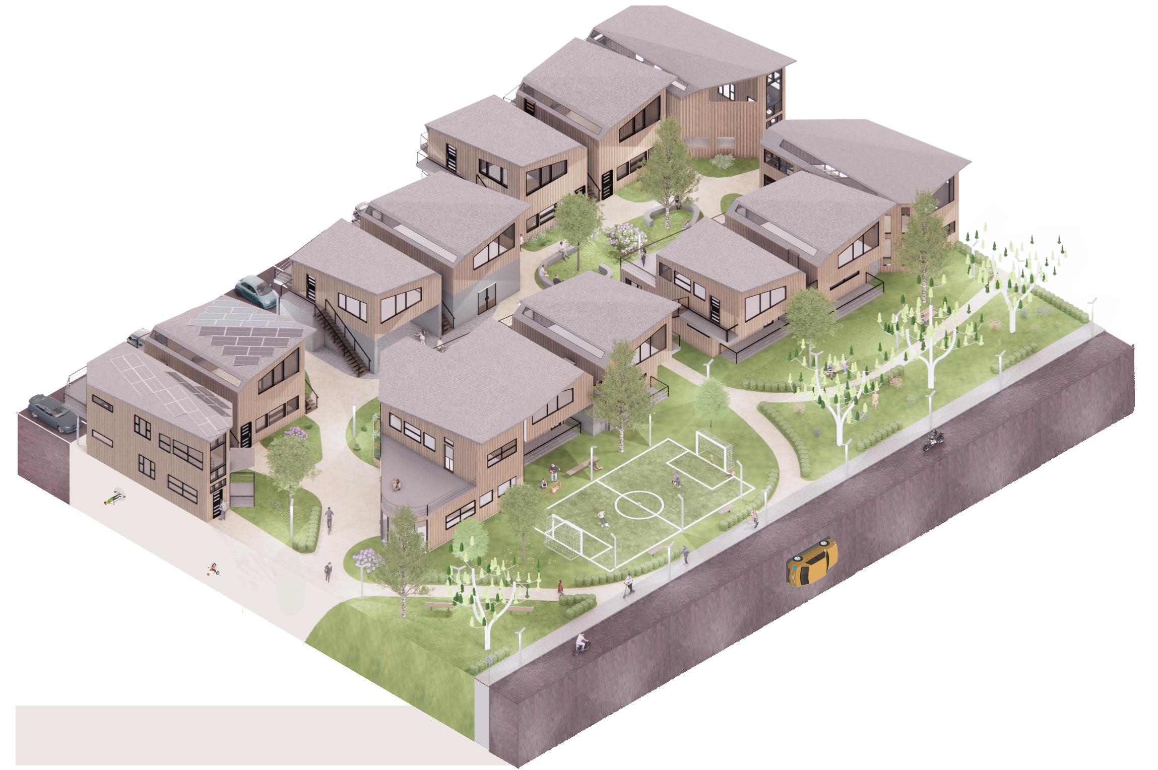 Housing is reframed as a productive civic system rather than a passive development. Conceived as a mobility hub, the site integrates transit, dwelling, and energy generation within a cohesive spatial strategy. Piezoelectric circulation paths capture kinetic movement, while wind trees and photovoltaic arrays supplement passive environmental performance. The neighborhood functions as infrastructure, transforming daily movement and climate into measurable civic output.
