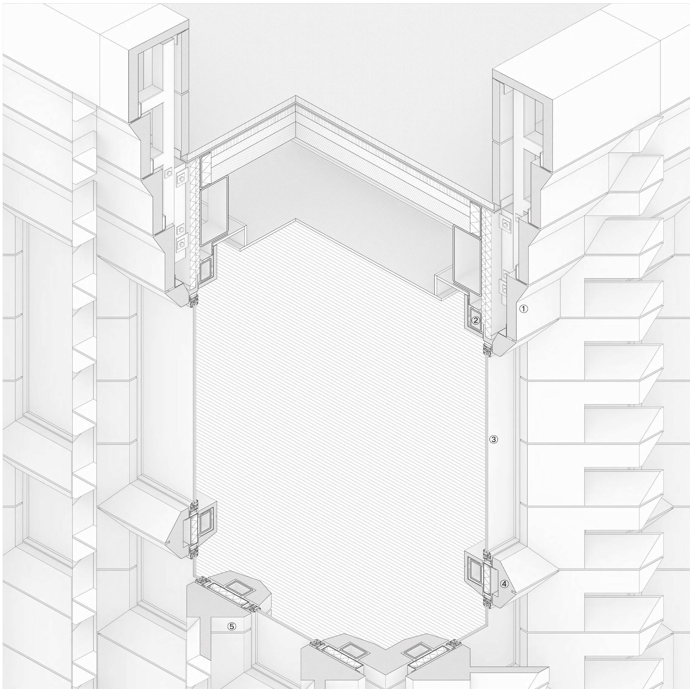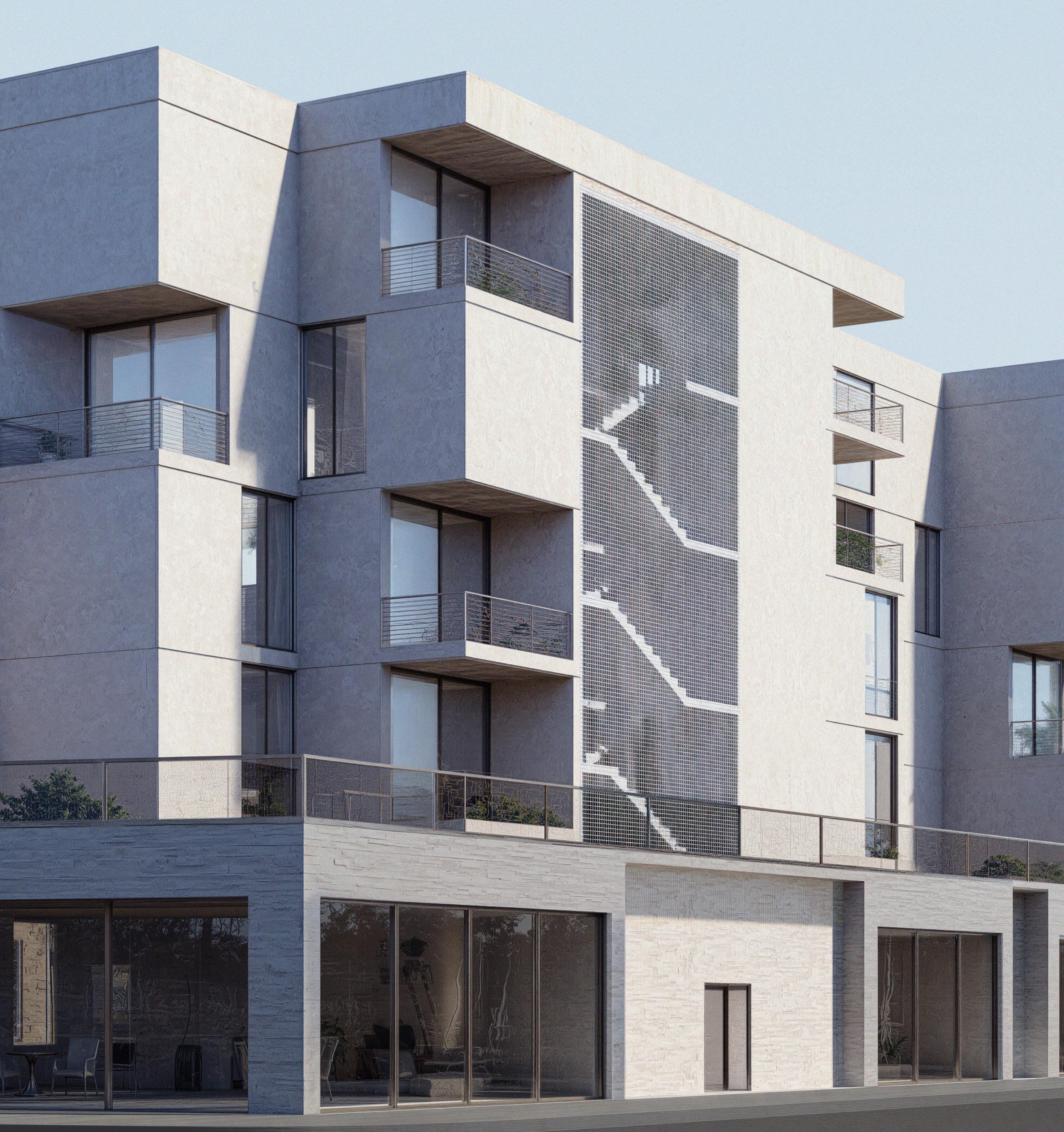 The ground level defines the plinth as an urban mediator rather than a mere podium. It consolidates commercial activity and circulation into a continuous base that absorbs the scale of the street, allowing the towers above to emerge in a controlled and non-intrusive manner. By anchoring the vertical volumes to an active ground plane, the project grounds density within a legible and civic framework.