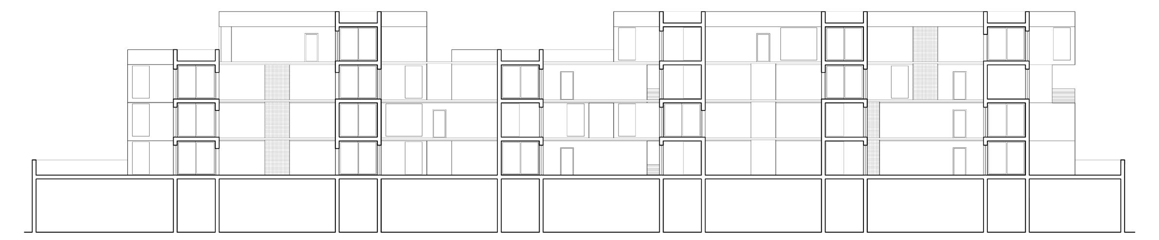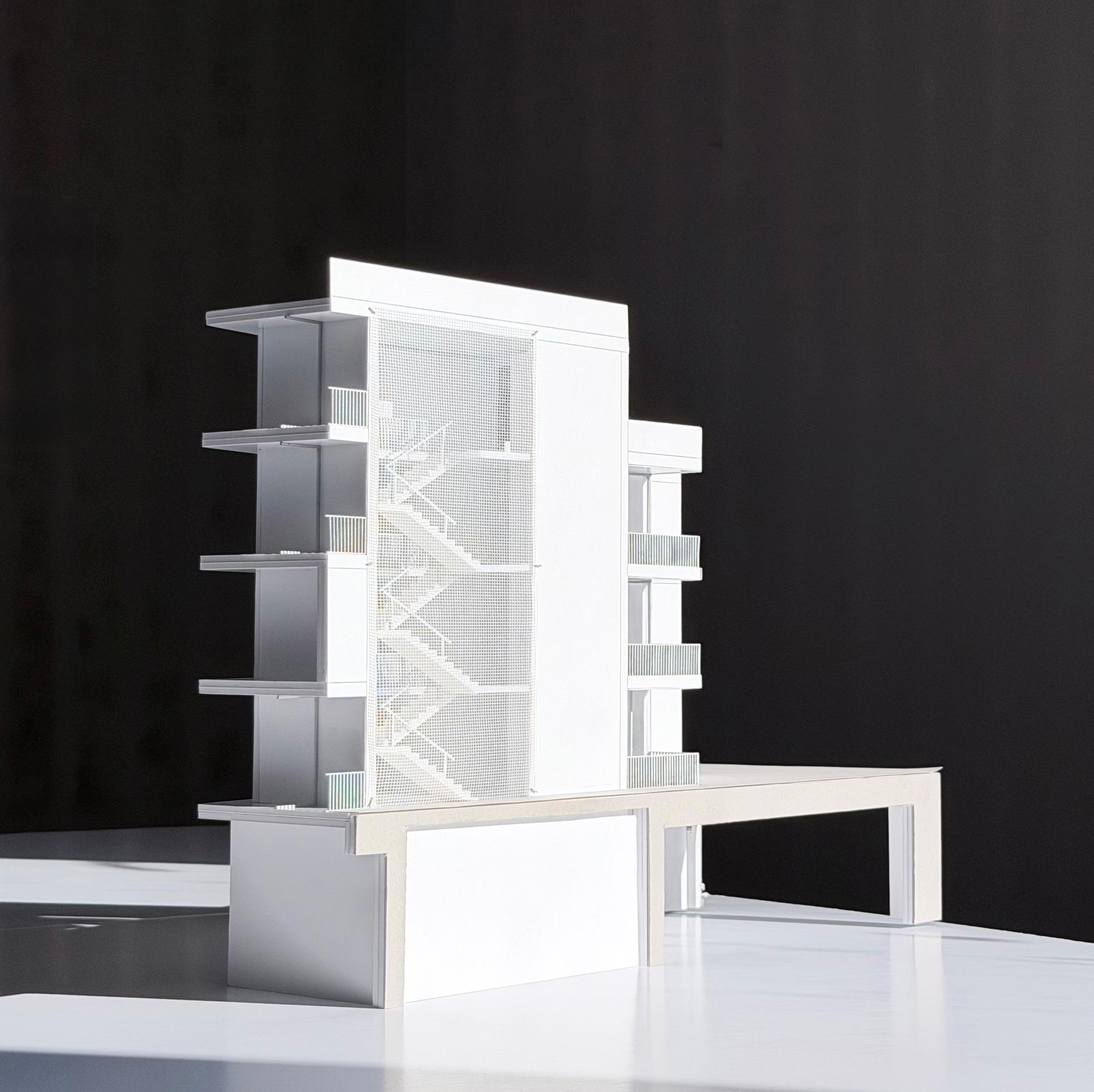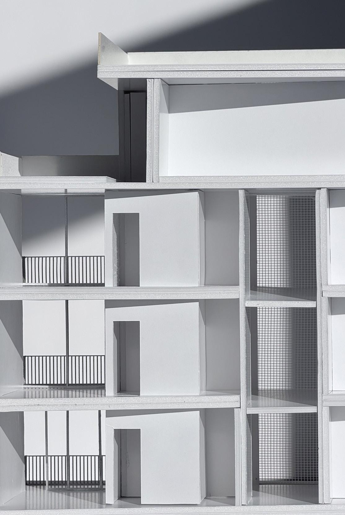 Through subtle manipulations of this primary massing logic, additional unit types emerge to support a range of occupants and living arrangements. Gaps of six or three feet between modules establish a layered horizontal circulation network, balancing connectivity with moments of separation.