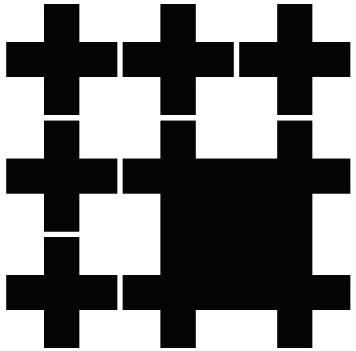 X-shaped unit plans generate shared courtyards when four modules aggregate in a 2 x 2 configuration, producing collective open space at their intersection.