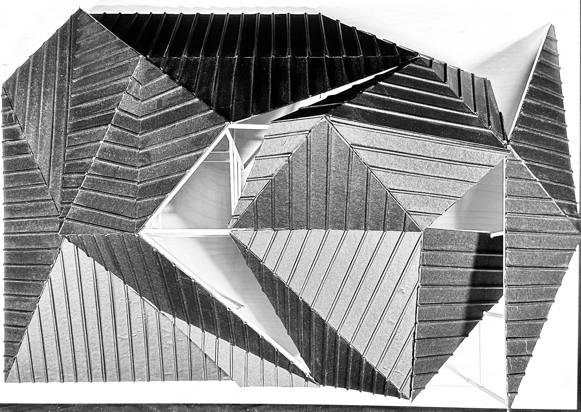 This project is a design for an adaptive room which blends poetry and architecture. With a hinged ceiling, the room can transform to allow users to ascend and connect with the outdoors.