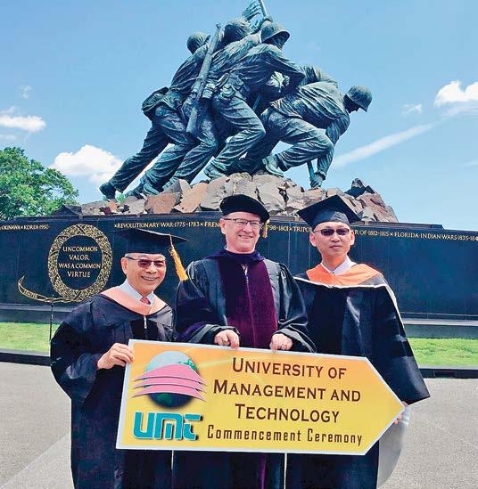 以碩士班第一名的成績光榮畢業。取得碩 士學位後,我並未停下求知的腳步,2017 年又獲得美國管理科技大學(UMT)工商 管理博士學位。2019年,耄耋之年的我 學習熱情不輟,申請進入中興大學攻讀 EMBA學程,再度浸染於充滿學術專業氛 圍的環境精進自我,自己感到十分開心!