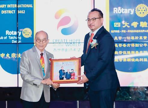 取得工商管理博士,82歲從中興大學EMBA畢 業。接著,聊到扶輪社,總監說今年RI社長葛登• 麥金納利今年除了和平同時更強調心理健康的重要