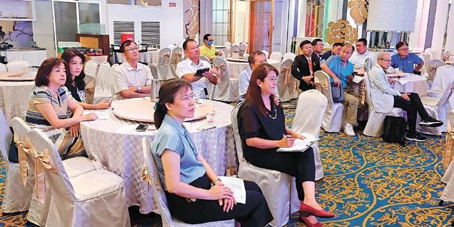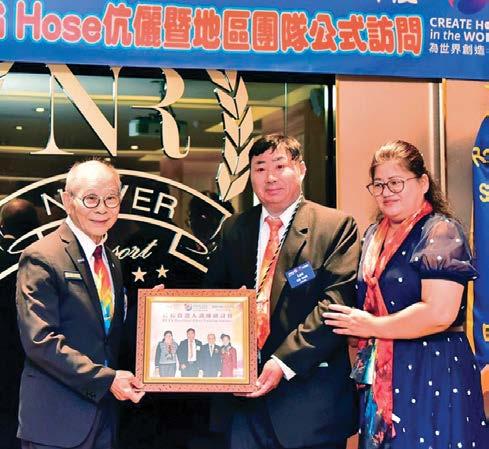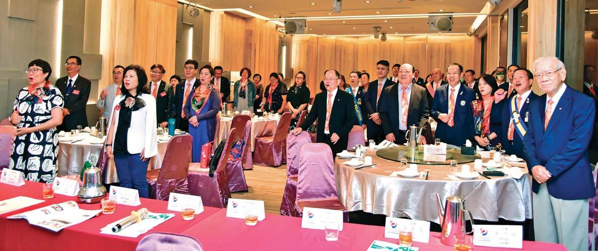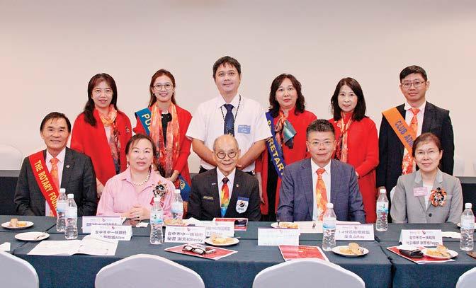 講與頒發地區聘書、保羅哈里斯證 書及胸章,至於我的專題演講,重 點在於轉達RI的談話與期許,加 上請託各社全力配合地區重要年度 工作目標,呼籲大家踴躍報名參加 地區年會、地帶會議與世界年會 等。另外在內輪寶眷部分亦由社長 夫人率領秘書夫人及各組長與地區 寶眷主委等地區團隊夫人們一起座