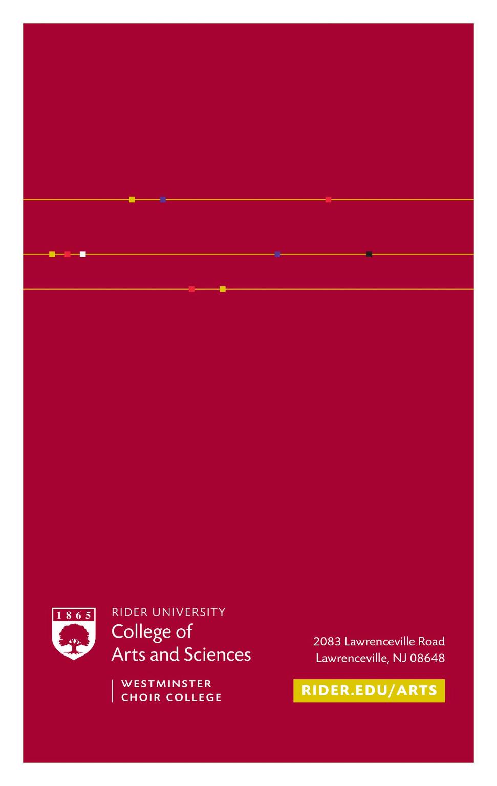 FOR MORE INFORMATION ON UPCOMING PERFORMANCES, SUBSCRIPTION AND PATRON PROGRAM OPTIONS, VISIT RIDER.EDU/ARTS.