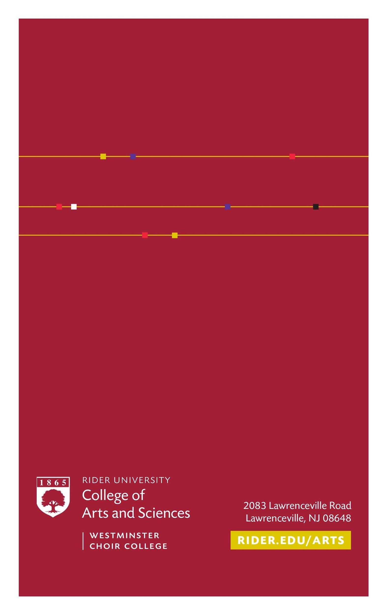 FOR MORE INFORMATION ON UPCOMING PERFORMANCES, SUBSCRIPTION AND PATRON PROGRAM OPTIONS, VISIT RIDER.EDU/ARTS.