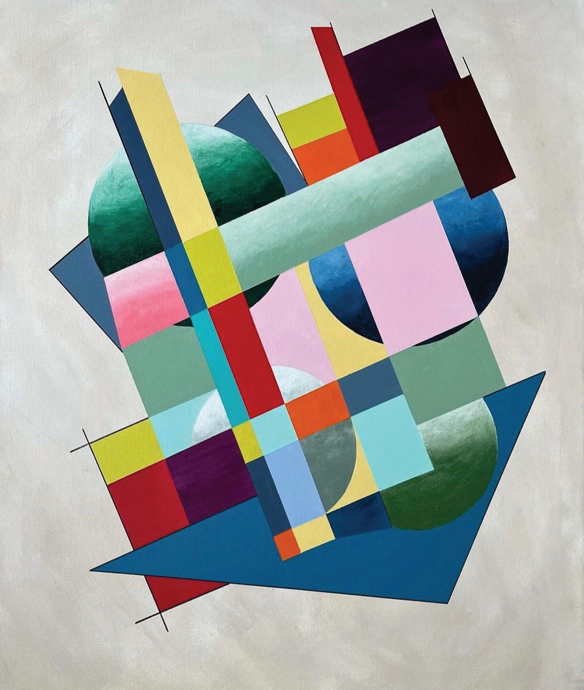 His artistic style serves as a visual manifestation of the innermost sparks of his spirit, capturing an unwavering commitment to absolute independence and expressing his innate emotions through the language of bold color, cubism, and geometric abstraction. Coming from a creative family, he nurtured a lifelong passion for the arts. Geometric abstraction lets him channel his love for color and shift from art as a hobby to his vocation, aiming to foster connection and communication. His pieces fuse vivid colors, bold lines, and angular shapes, resulting in luminous and energetic narratives.