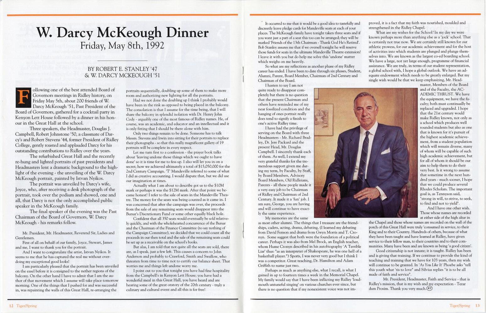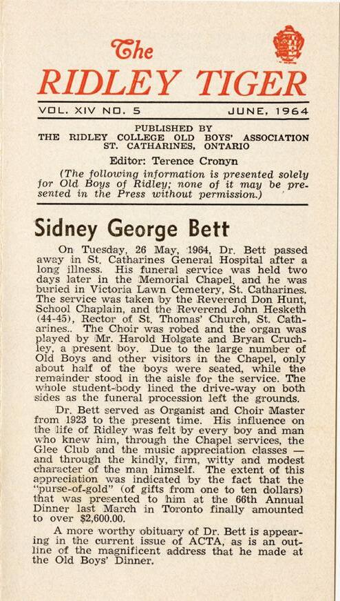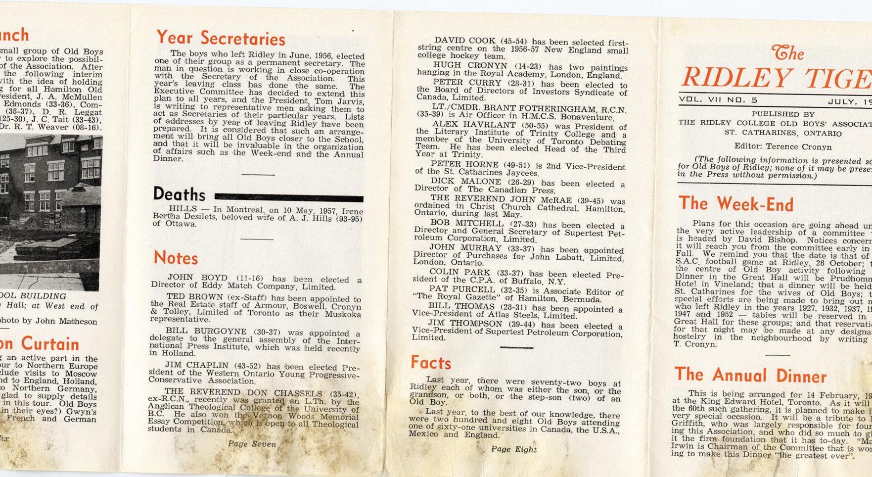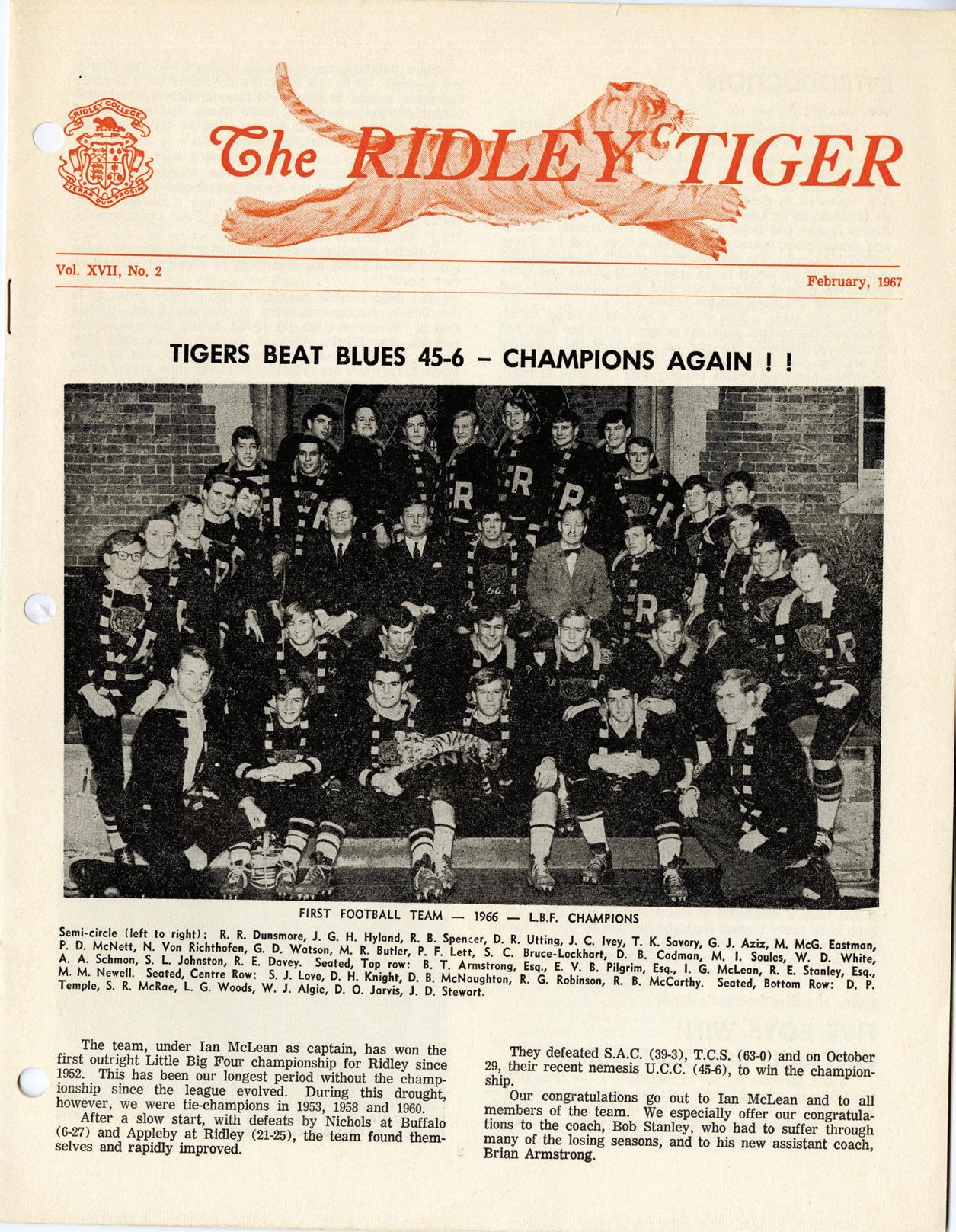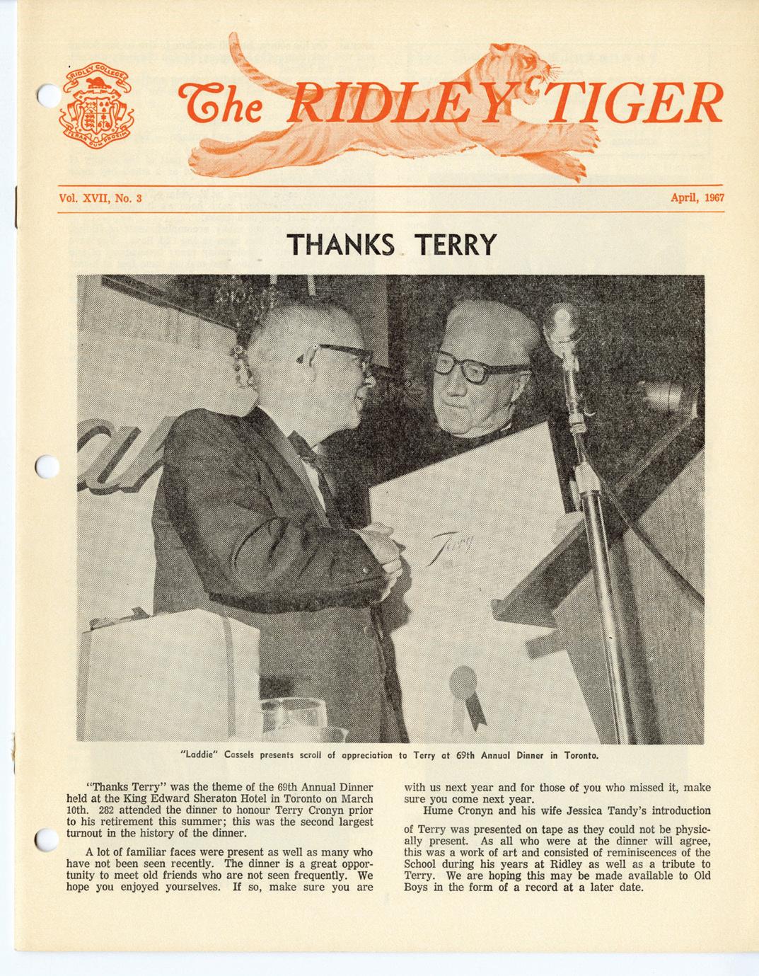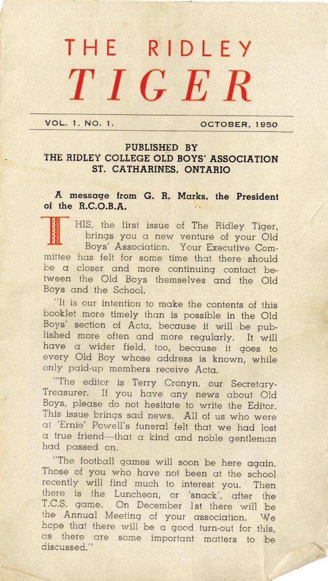 archival pieces elicit a fond memory or story about Tiger from your time at Ridley, we encourage you to reach out — we would love to listen and record these stories.