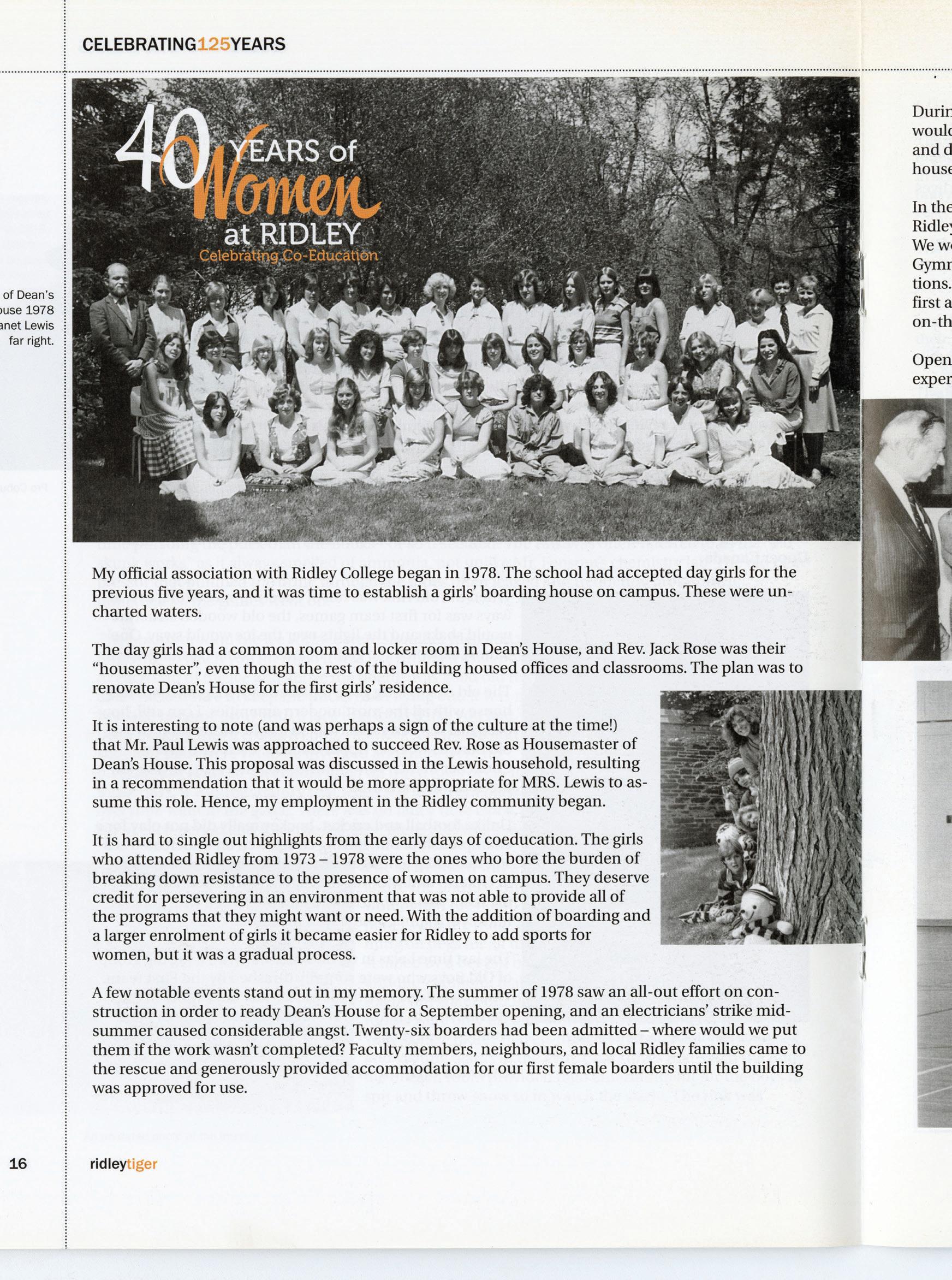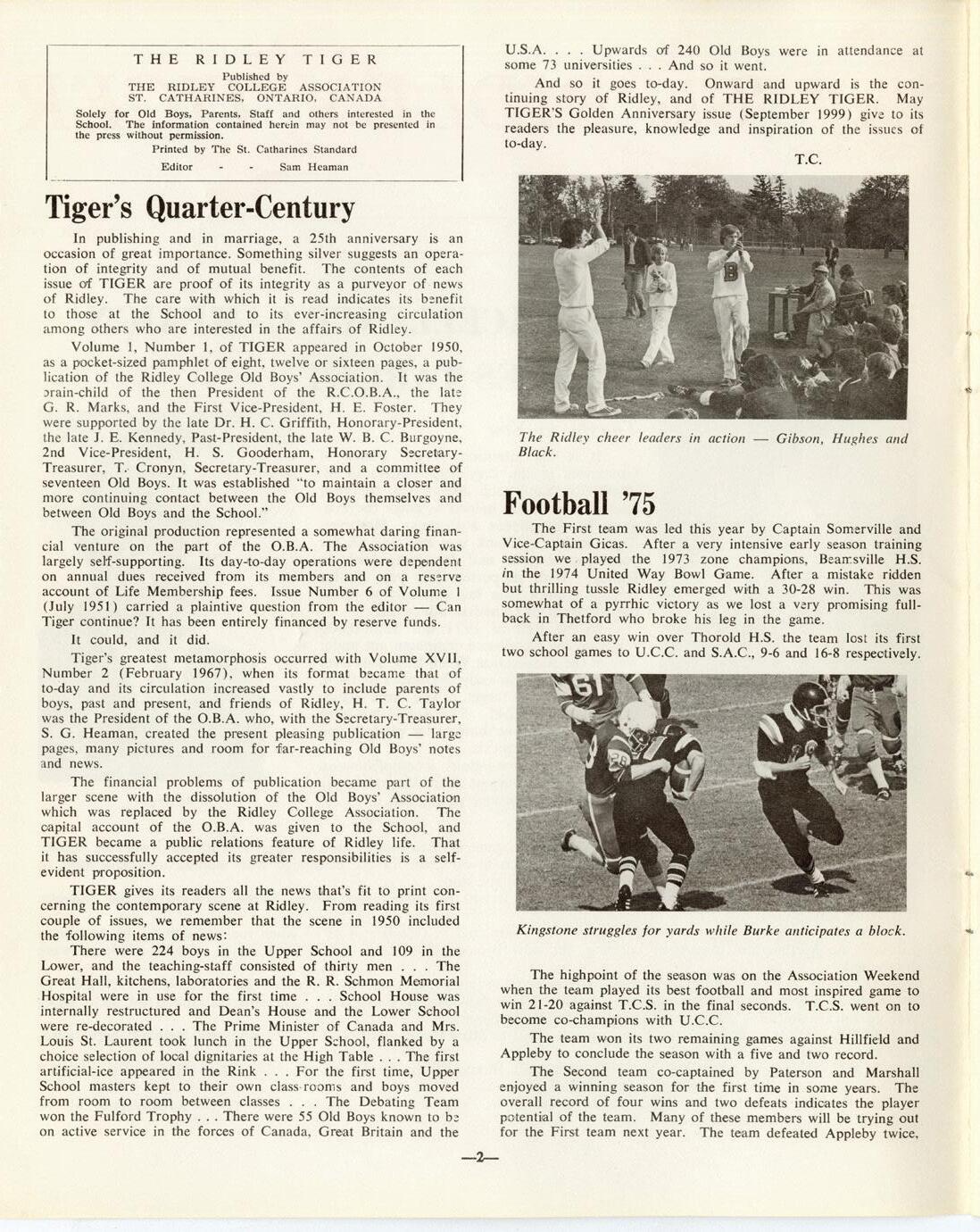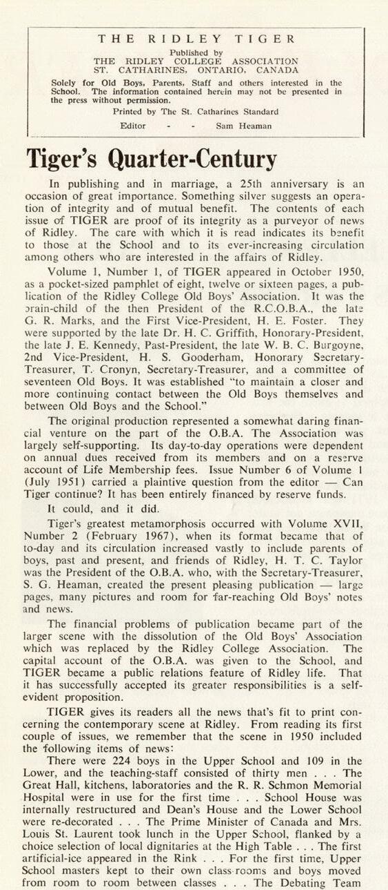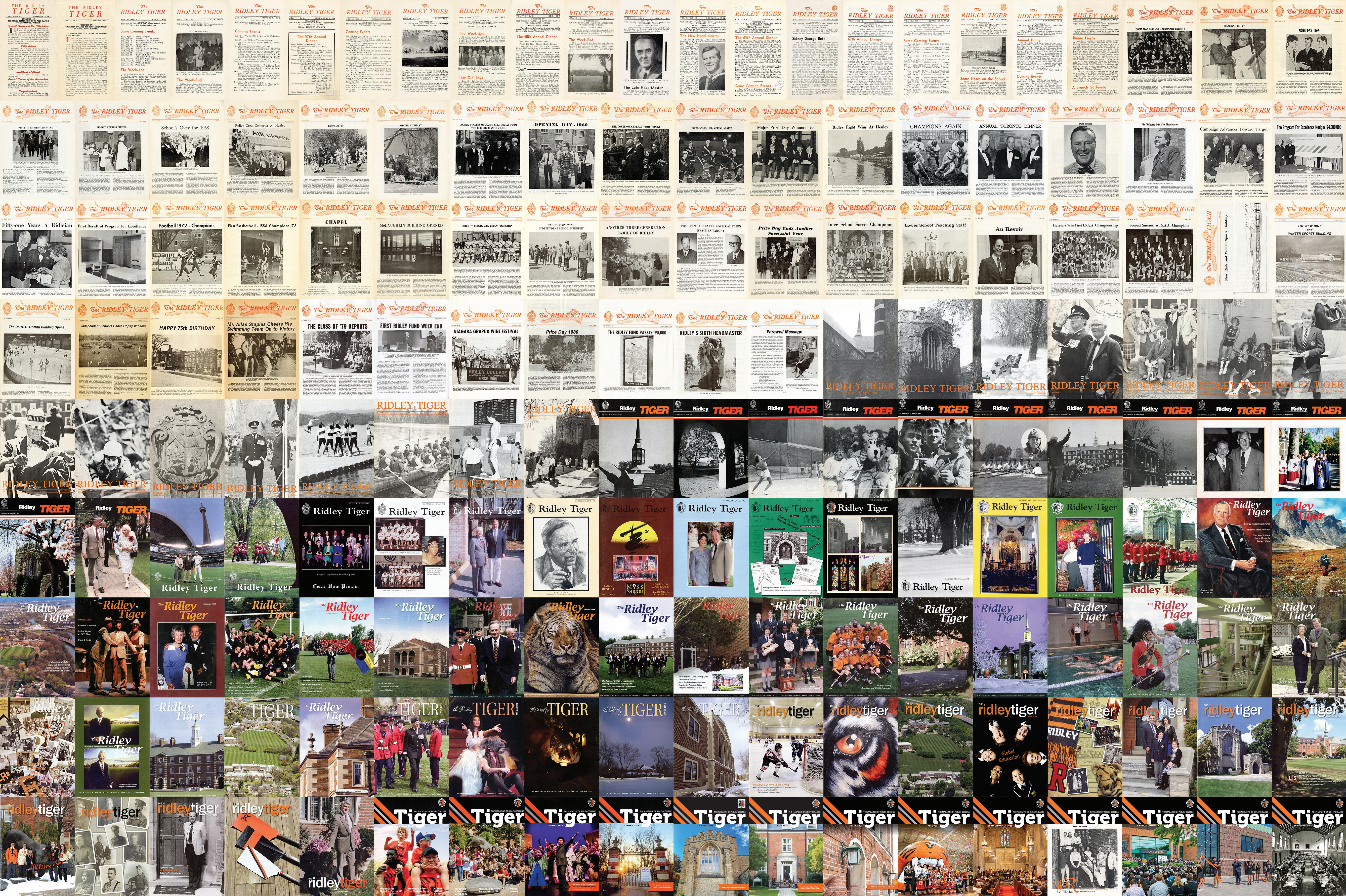 For this issue, we dug deep into the archives and combed through each Tiger issue published over the last 75 years. Throughout these pages, you’ll see some of the highlights we rediscovered. From important evolutions and projects for the School at large, profiles on new headmasters or retiring faculty and staff and stories from campus that shed a light on student life at Ridley throughout the decades. If any of these