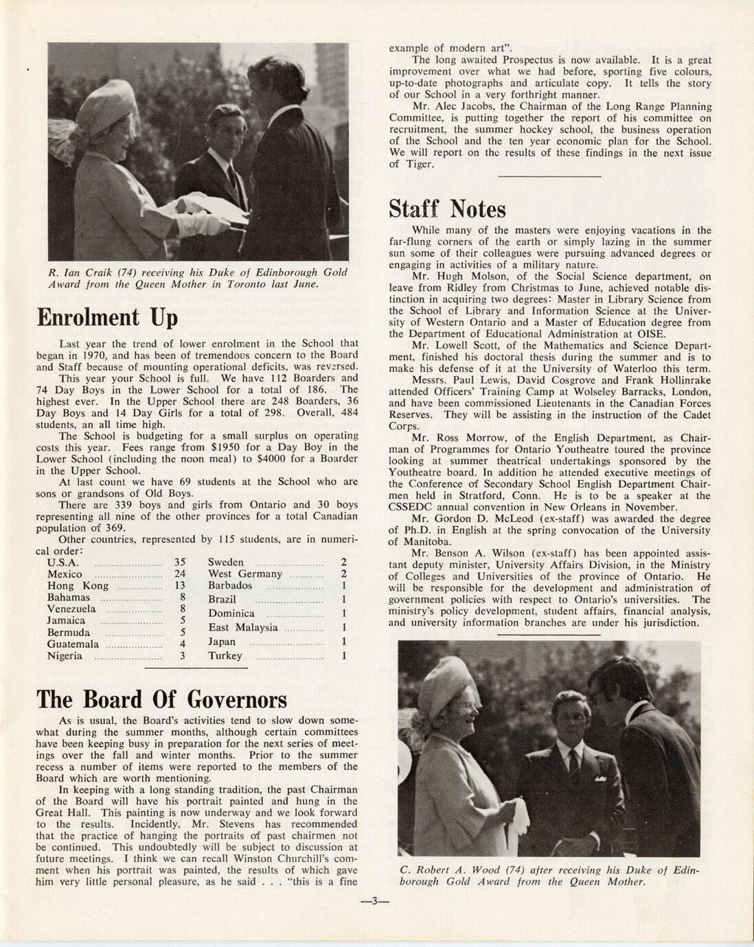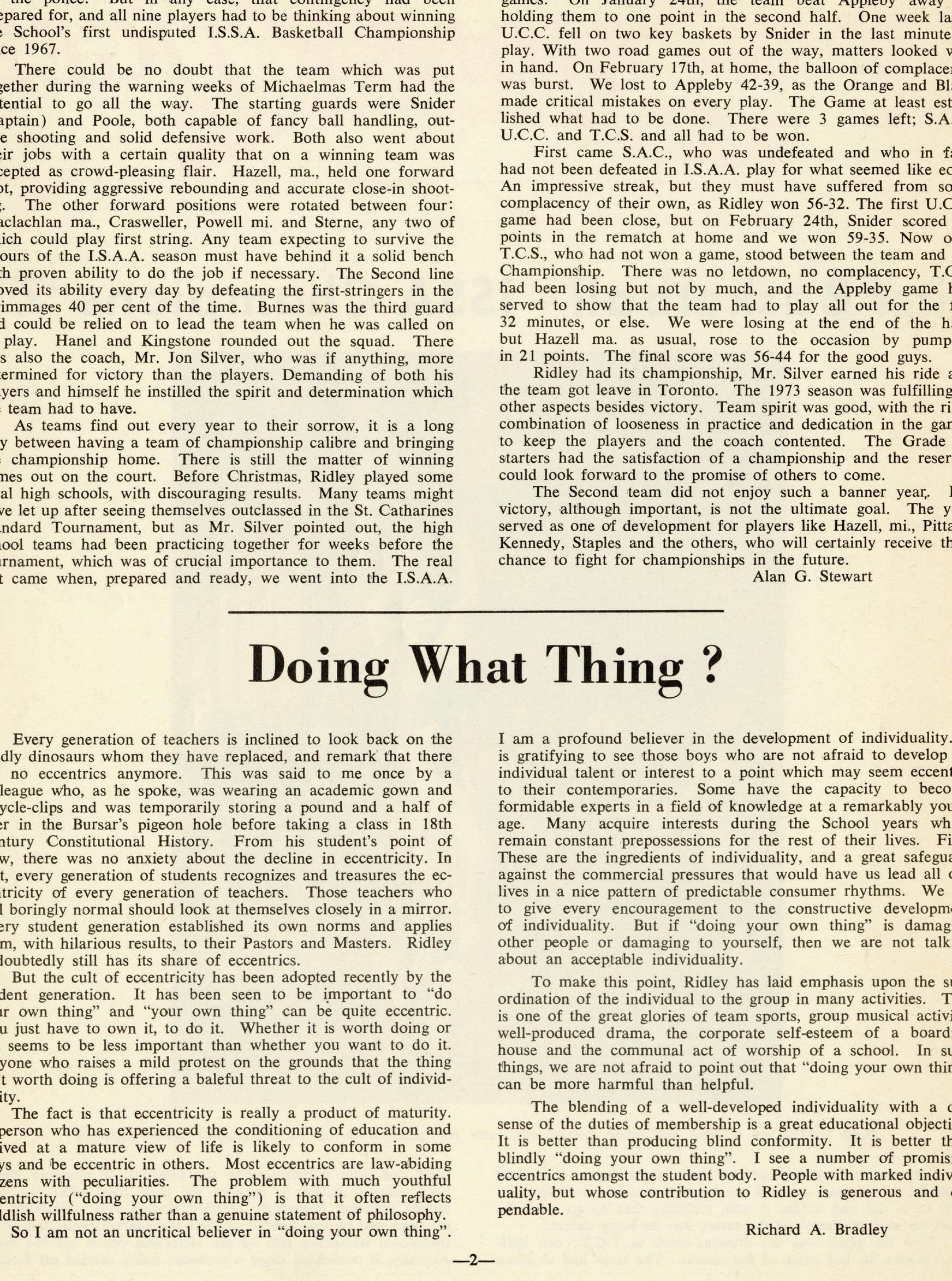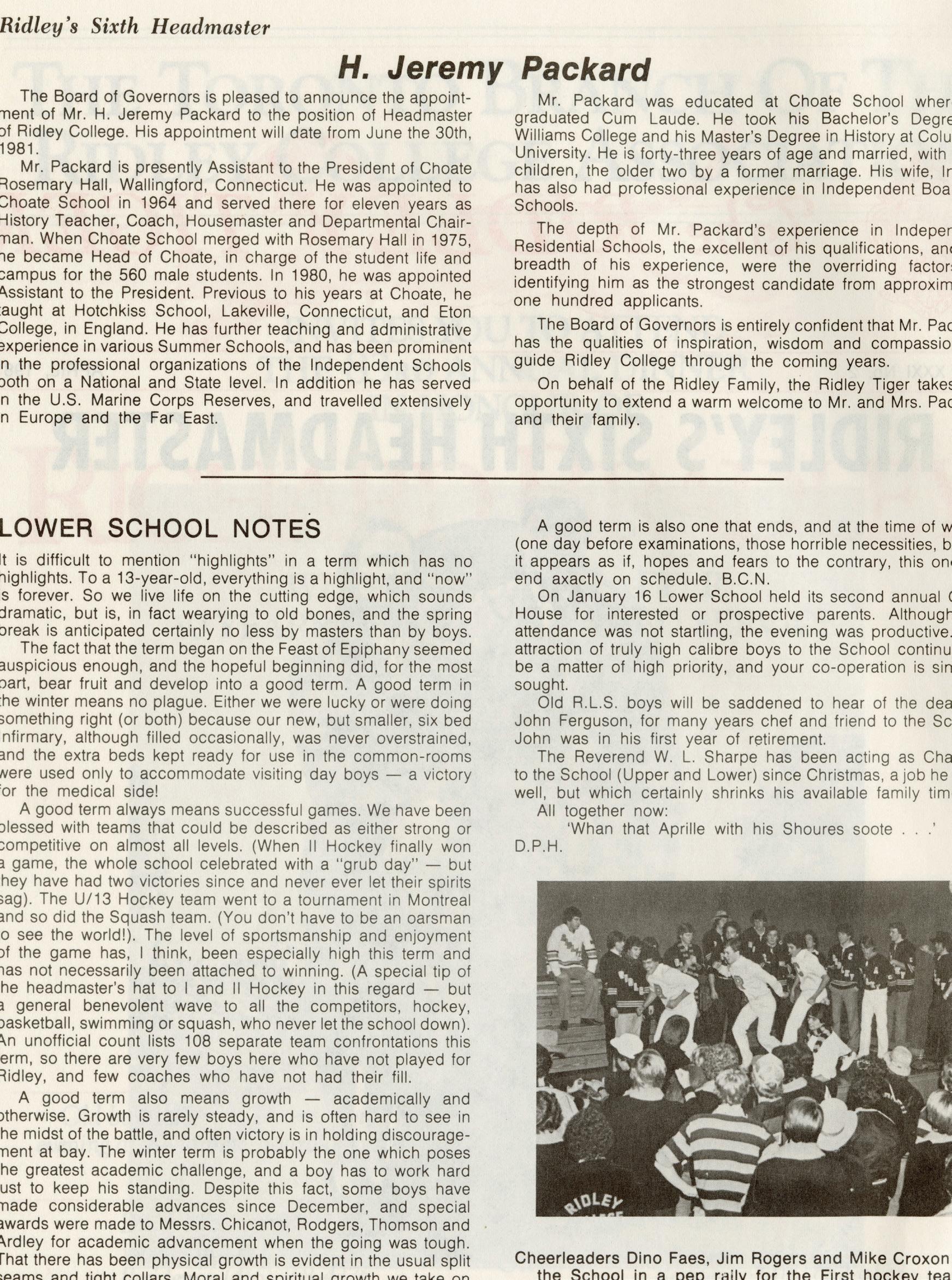 For this issue, we dug deep into the archives and combed through each Tiger issue published over the last 75 years. Throughout these pages, you’ll see some of the highlights we rediscovered. From important evolutions and projects for the School at large, profiles on new headmasters or retiring faculty and staff and stories from campus that shed a light on student life at Ridley throughout the decades. If any of these