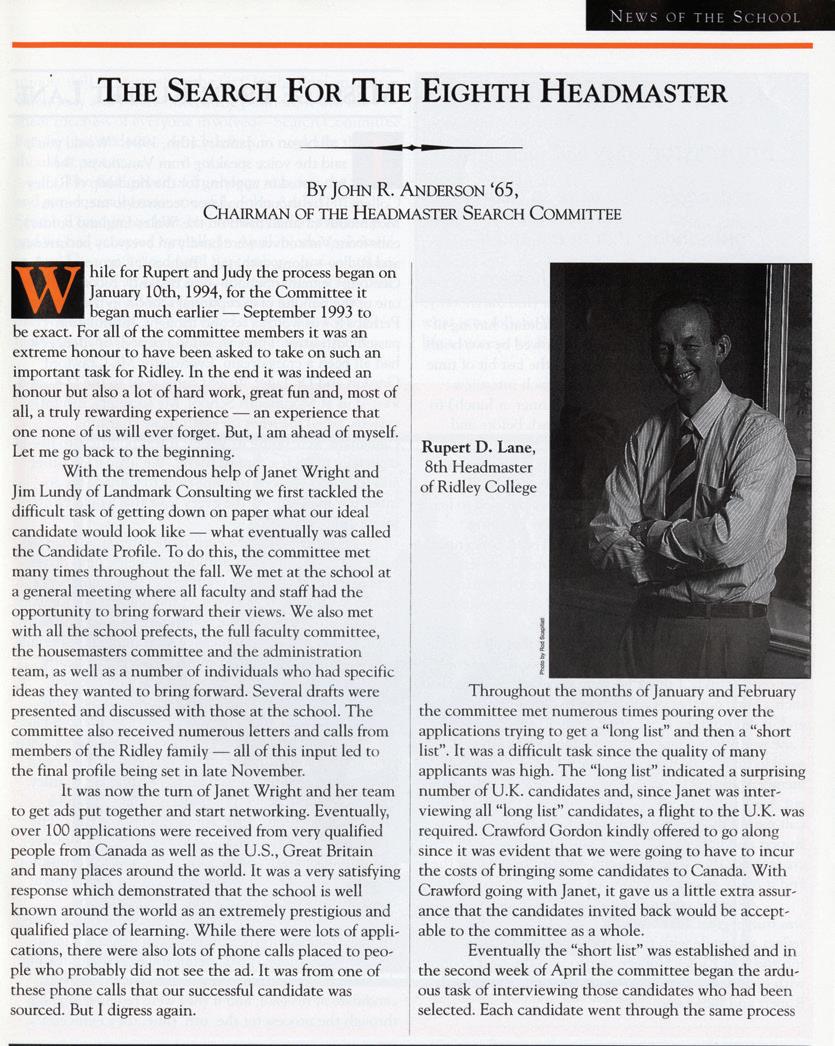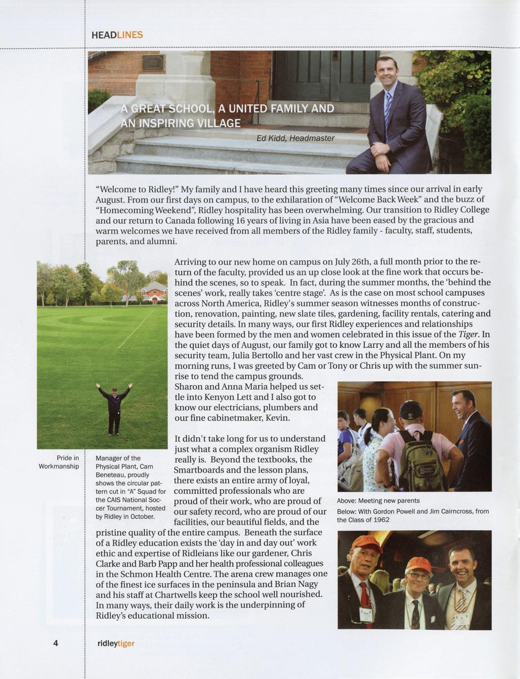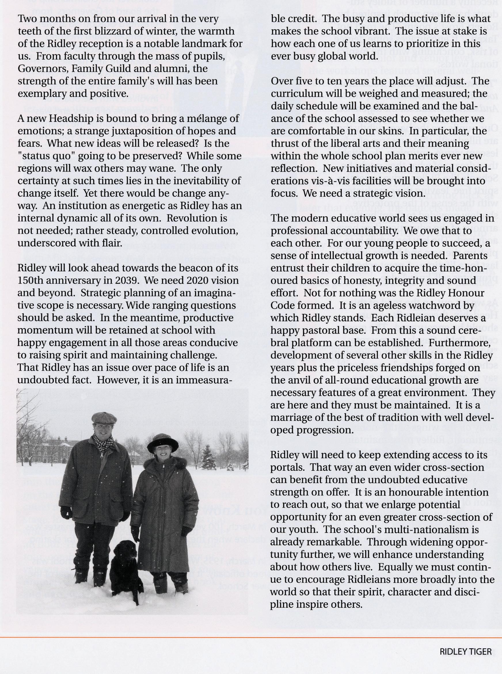 As we celebrate this anniversary, we are reminded of the enduring legacy of those who have shaped Ridley’s journey. Throughout the issue, you’ll see mentions of important Ridleians who have helped bring the magazine to where it is today. Among them is Brian Iggulden ’67, the subject of a heartfelt tribute by Bryan Rose ’96 that celebrates the indelible impact of his loyal support, service and volunteerism on our community. Brian’s commitment to Ridley was matched only by his humility, generosity and gracious affability. His legacy will continue to inspire generations of Ridleians.