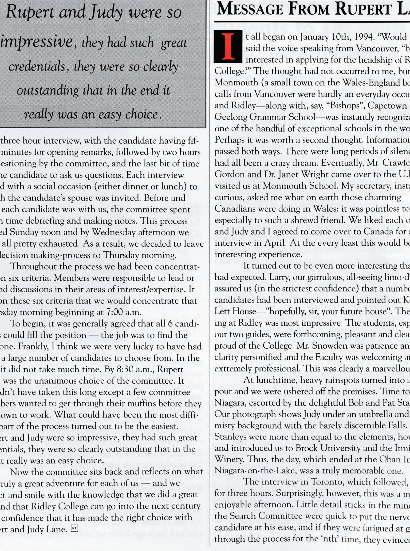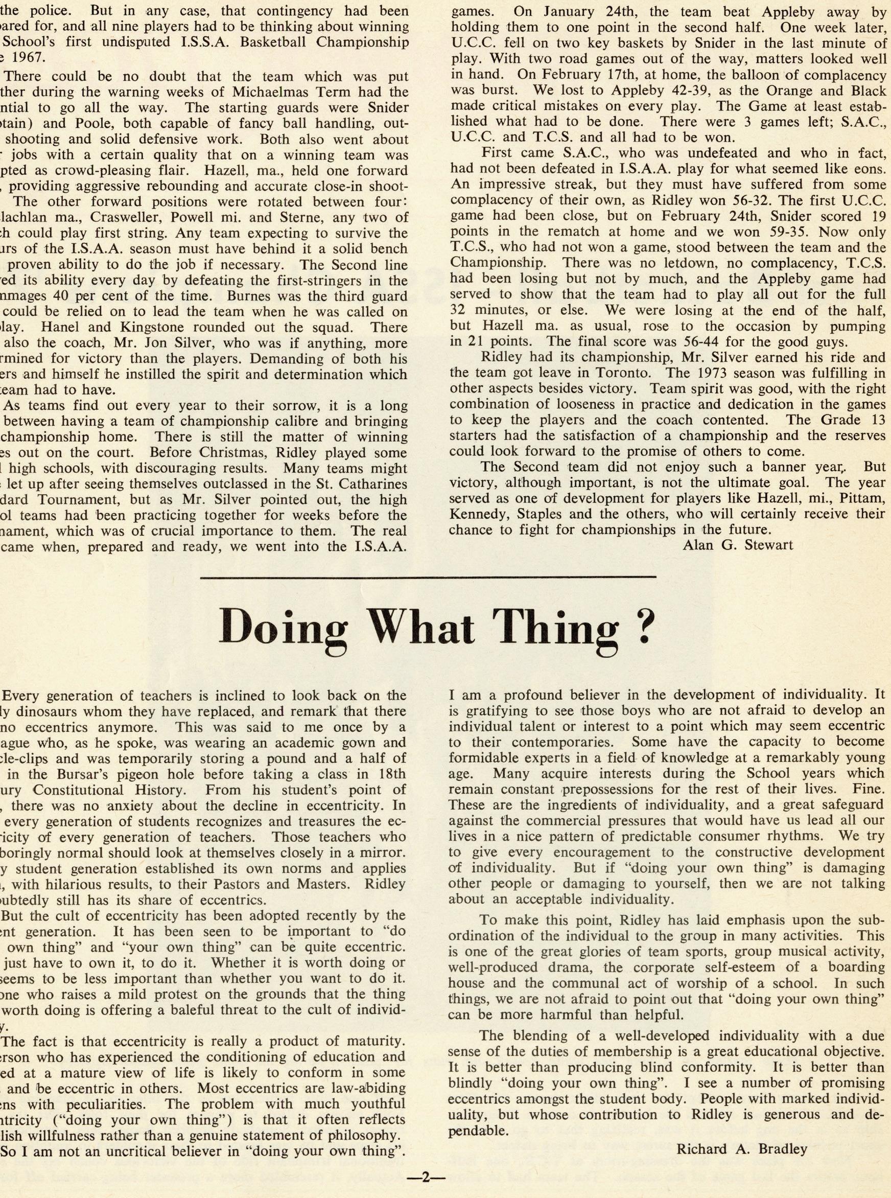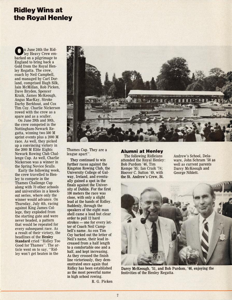 As we celebrate this anniversary, we are reminded of the enduring legacy of those who have shaped Ridley’s journey. Throughout the issue, you’ll see mentions of important Ridleians who have helped bring the magazine to where it is today. Among them is Brian Iggulden ’67, the subject of a heartfelt tribute by Bryan Rose ’96 that celebrates the indelible impact of his loyal support, service and volunteerism on our community. Brian’s commitment to Ridley was matched only by his humility, generosity and gracious affability. His legacy will continue to inspire generations of Ridleians.