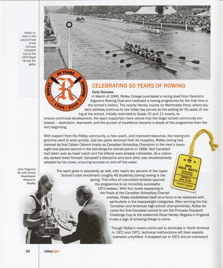 Greetings from Ridley College! Welcome to a special edition of Tiger. In this edition, we celebrate a truly remarkable milestone: 75 years of chronicling the life, spirit and achievements of our Ridley community. For generations, Tiger has been more than a magazine; it has been a living archive, capturing the inspiring moments, traditions and stories that define our School.