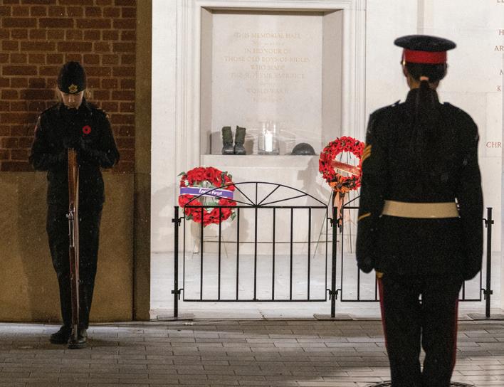 Students from Junior Kindergarten through Grade 12 gathered in the Memorial Chapel for two poignant Remembrance Day ceremonies. As tradition, each student received the name of a fallen soldier. As the Roll of Honour was read aloud, they sat in reflective silence, honouring the 142 Ridley students and others who made the ultimate sacrifice.