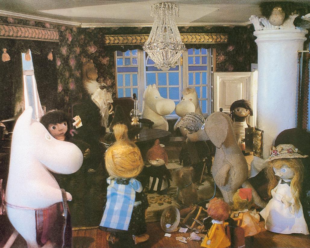 An Unwanted Guest is a picture book by Tove Jansson, illustrated with photographs by Tove’s brother Per Olov Jansson. The model of the Moominhouse, which is two metres high and forms the basis of the book, was created by Tove Jansson’s partner Tuulikki Pietilä, Pentti Eistola, and Tove Jansson. The original model is in the Moomin Museum in Tampere for everyone to see.