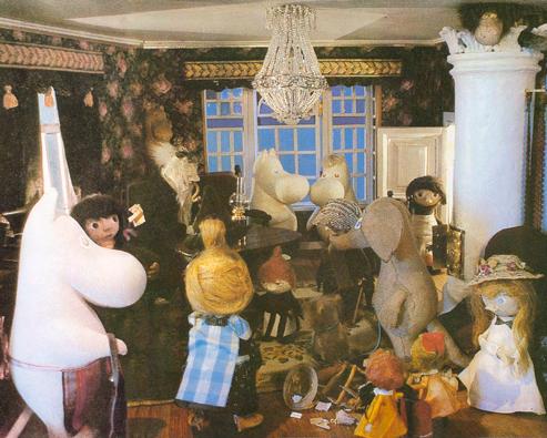 An Unwanted Guest is a picture book by Tove Jansson, illustrated with photographs by Tove’s brother Per Olov Jansson. The model of the Moominhouse, which is two metres high and forms the basis of the book, was created by Tove Jansson’s partner Tuulikki Pietilä, Pentti Eistola, and Tove Jansson. The original model is in the Moomin Museum in Tampere for everyone to see.